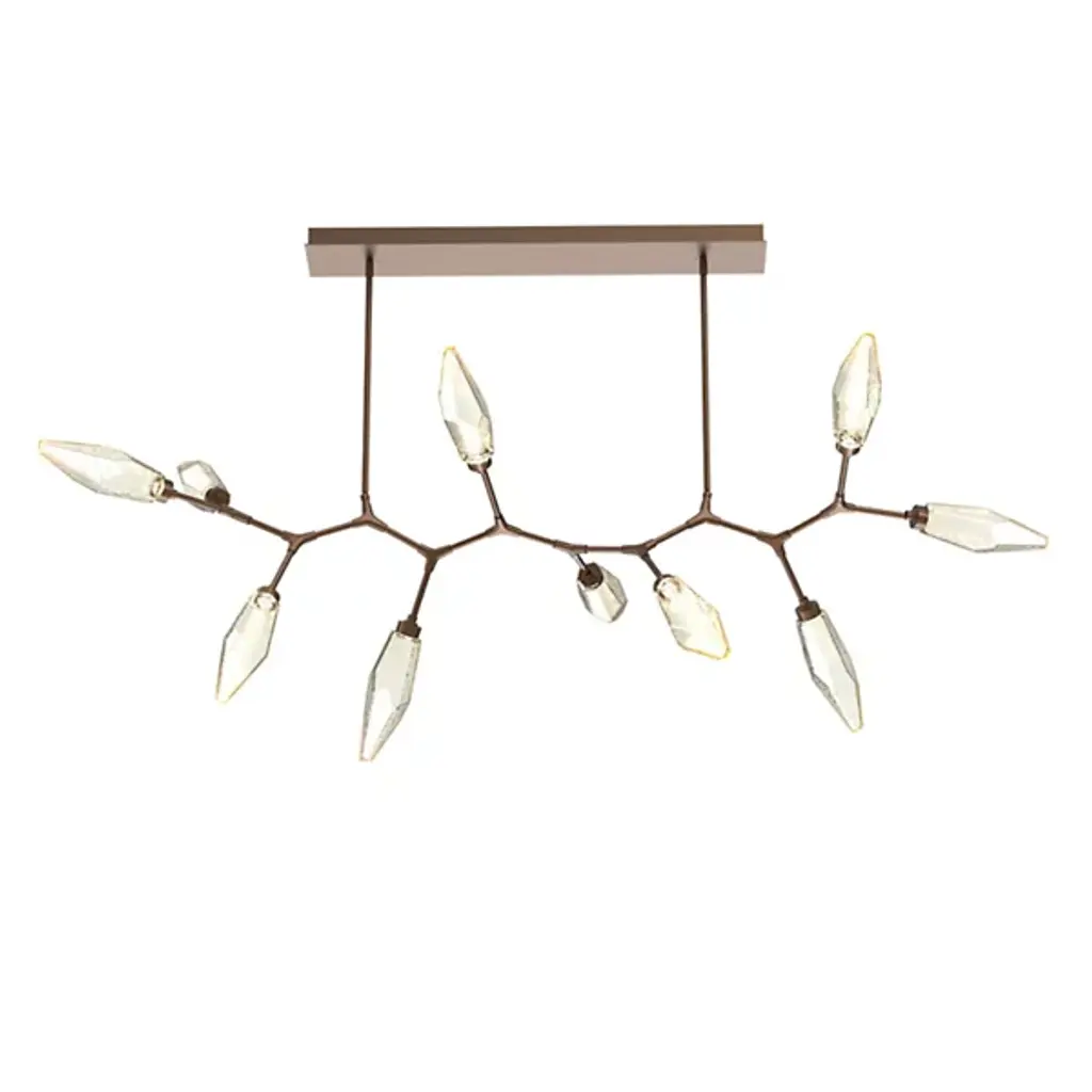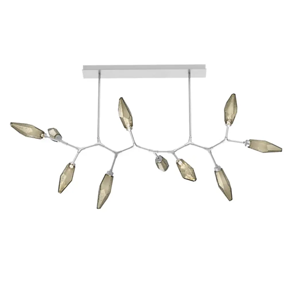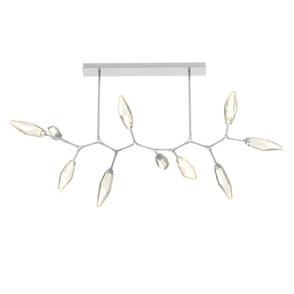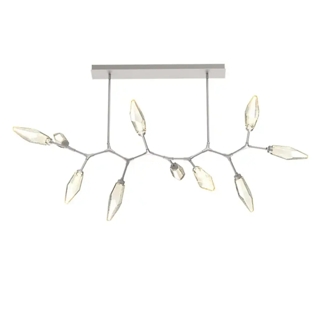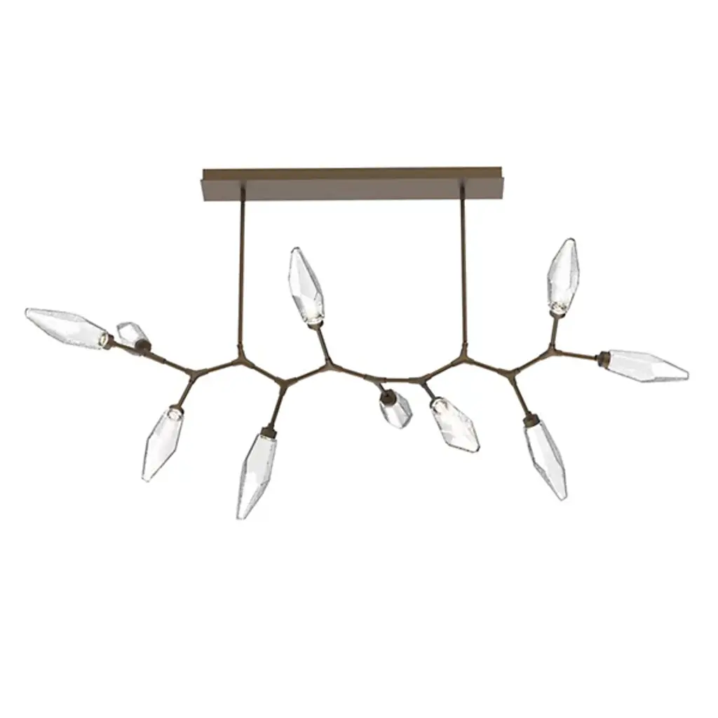 Add a 'branching bubble' fixture like no other to your space with the Rock Crystal Modern Branch LED Linear Suspension from Hammerton Studio. Departing from the mundane filament bulb, this chandelier boasts one-of-a-kind LED-illuminated handblown glass shades, evoking the beauty of natural quartz. The unique design transforms your space, creating a captivating ambiance that merges modern aesthetics with the organic allure of rock crystal. Elevate your lighting experience with this exceptional chandelier, where each handblown glass shade becomes a radiant gem, offering your interior a distinctive and elegant touch.