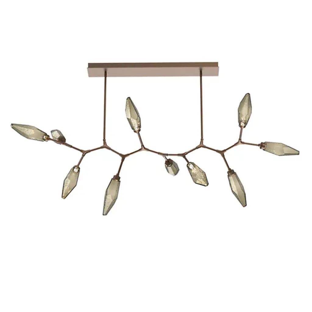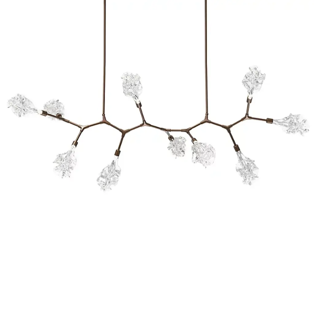 Add a 'branching bubble' fixture like no other to your space with the Rock Crystal Modern Branch LED Linear Suspension from Hammerton Studio. Departing from the mundane filament bulb, this chandelier boasts one-of-a-kind LED-illuminated handblown glass shades, evoking the beauty of natural quartz. The unique design transforms your space, creating a captivating ambiance that merges modern aesthetics with the organic allure of rock crystal. Elevate your lighting experience with this exceptional chandelier, where each handblown glass shade becomes a radiant gem, offering your interior a distinctive and elegant touch.