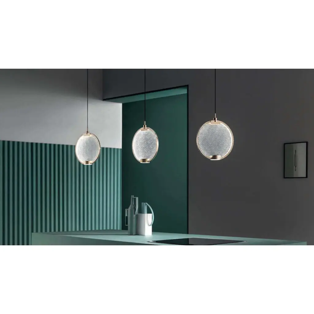 Indulge in the timeless elegance of Round Linear Trio Hanging Lamp, a minimalist collection inspired by the infinite expressions of a circle. Its vintage mood is enhanced by the special metal and glass finishes, making it a universally recognized symbol of sophistication and luxury. Elevate your space with this graphic form, reminiscent of the radiant sun and the beauty of the natural world.