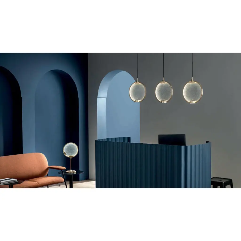 Indulge in the timeless elegance of Round Linear Trio Hanging Lamp, a minimalist collection inspired by the infinite expressions of a circle. Its vintage mood is enhanced by the special metal and glass finishes, making it a universally recognized symbol of sophistication and luxury. Elevate your space with this graphic form, reminiscent of the radiant sun and the beauty of the natural world.