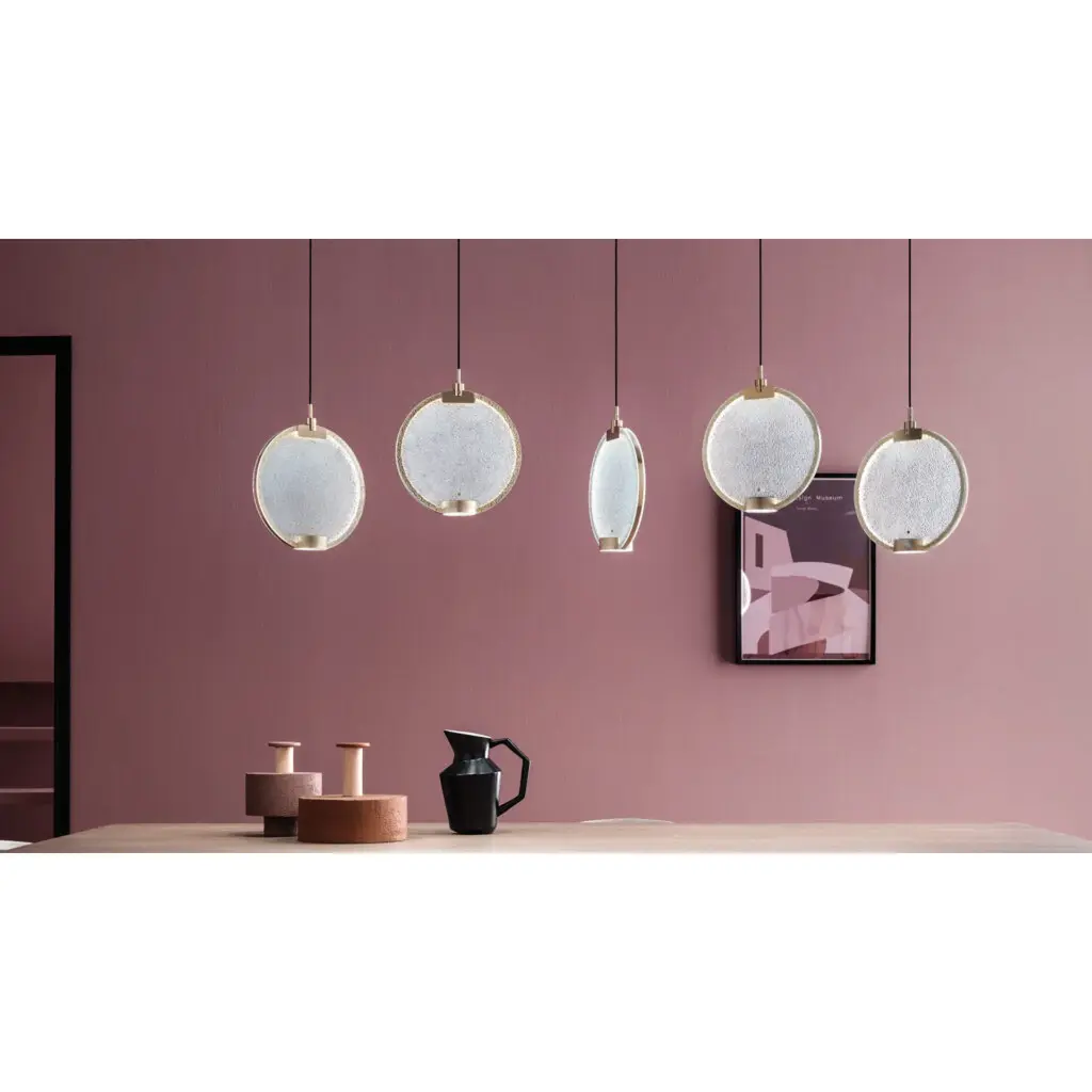 Indulge in the timeless elegance of Round Prism Glass Hanging Lamps (5), a minimalist collection inspired by the infinite expressions of a circle. Its vintage mood is enhanced by the special metal and glass finishes, making it a universally recognized symbol of sophistication and luxury. Elevate your space with this graphic form, reminiscent of the radiant sun and the beauty of the natural world.