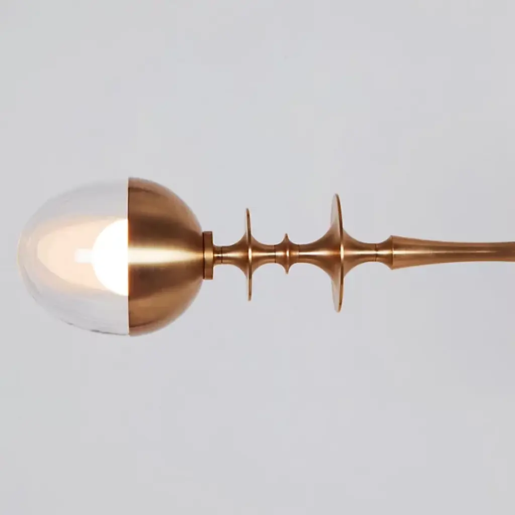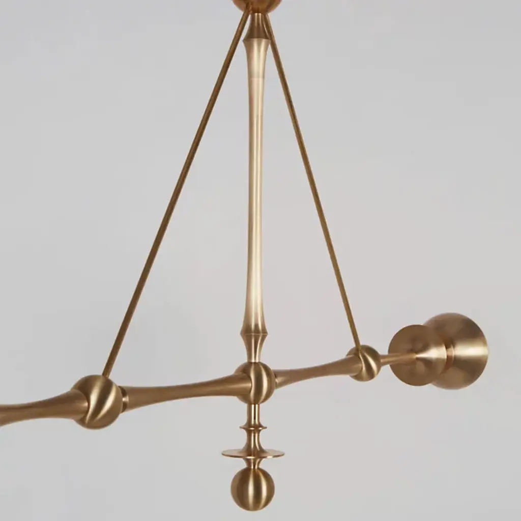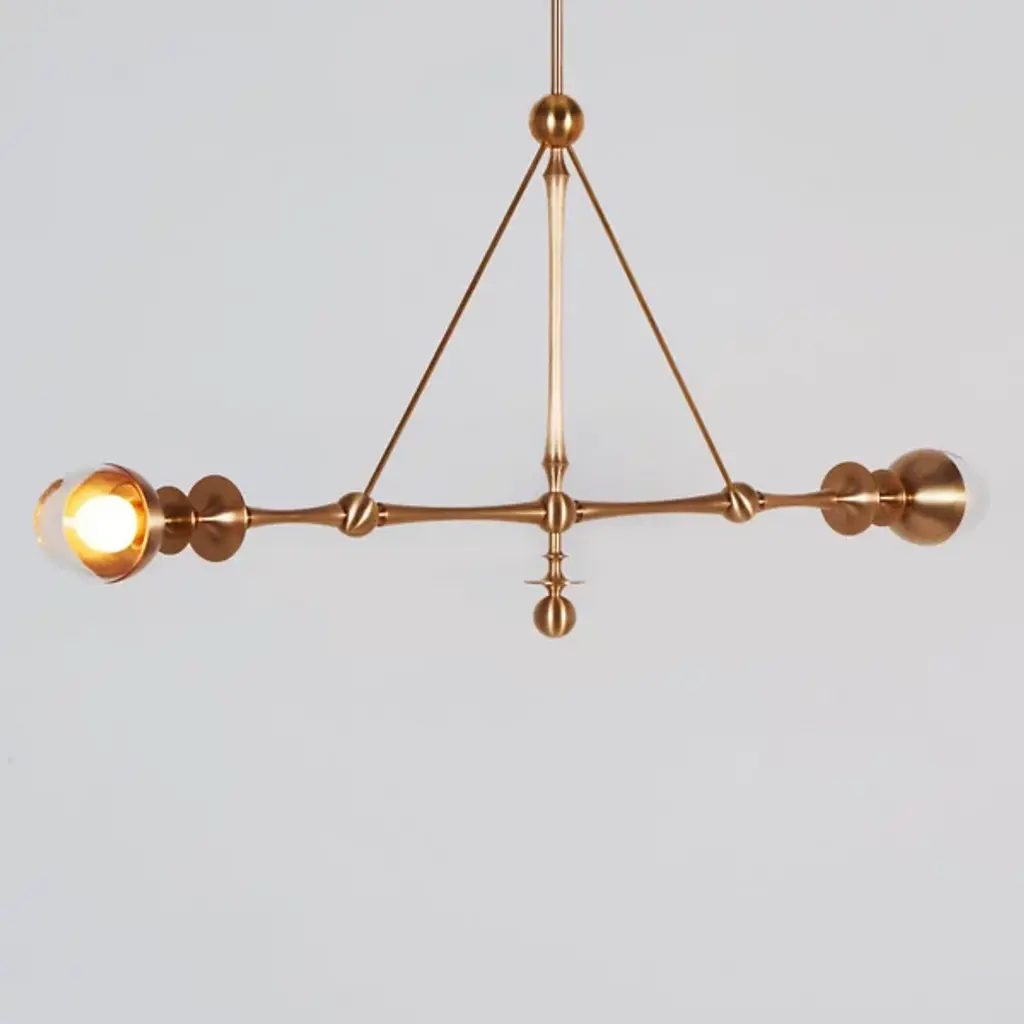 The Rue Sala Two Arm LED Pendant from Roll & Hill is a sloped-ceiling adaptable fixture designed by Jessica Helgerson, who pays tribute to summers spent in Lyon, France, taking inspiration from bronze statuettes and Louis XVI furniture. This pendant is composed of white oak, brass, and bone china. It gives your living space a contemporary look. Its integrated LED emanates a brilliant glow that can be dimmed using a separately sold ELV dimmer.