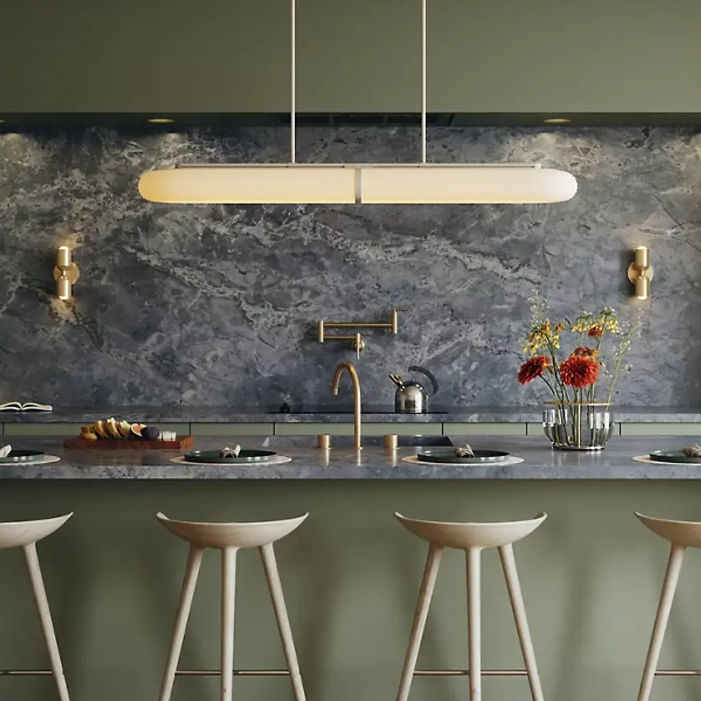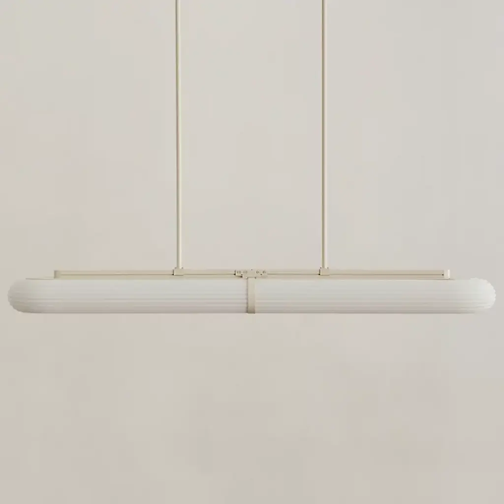 The Saga Duo Linear Suspension from In Common With blazes like a beacon of simplicity amid overly busy interior lighting. With its capsule-shaped diffuser encased in a contrasting accent band, this fixture combines efficiency with meticulous craftsmanship. The shade features fluted edges, integrated dim-to-warm LED, and three metal finishes, catering perfectly to task-oriented environments. Crafted using low-waste aluminum and recycled LDPE diffusers, each piece embodies innovative design, harmonizing warmth with functionality. An excellent option for home use and professional spaces, this suspension is attractive and customizable, adding a calming presence and even ambiance wherever it is placed.