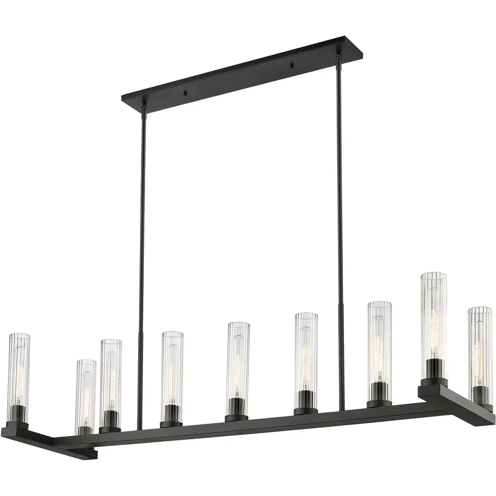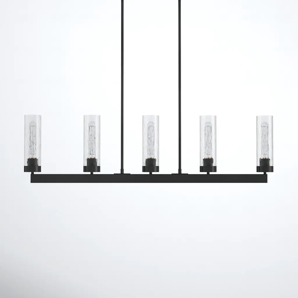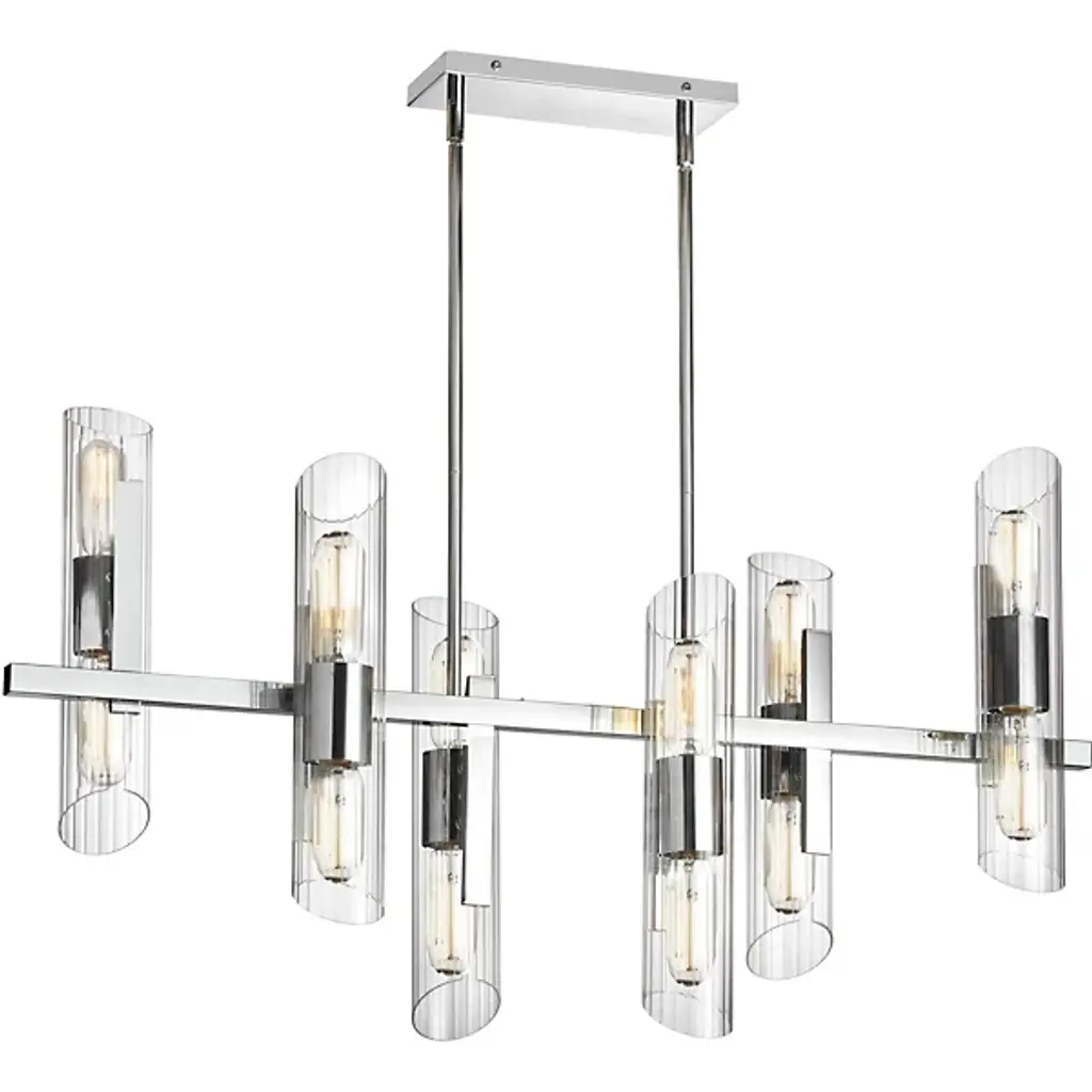 The Samantha Linear Suspension from Dainolite is an ornate piece making time inside the dining room or kitchen a memorable one. It’s a dashing piece hanging over a table surface with a sleek metal structure. The metal gives the piece a pop of rich color that draws the eye from across the room. Also catching the eye, clear fluted glass produces elegant linear marks in the air and reflective accents. Arranged in a gentle curve, the piece pleases in its movement. Pairs of bulbs enhance the silhouette with a warm, textured light. The sweeping glow glazes the table surface below and generates a pleasant ambiance.