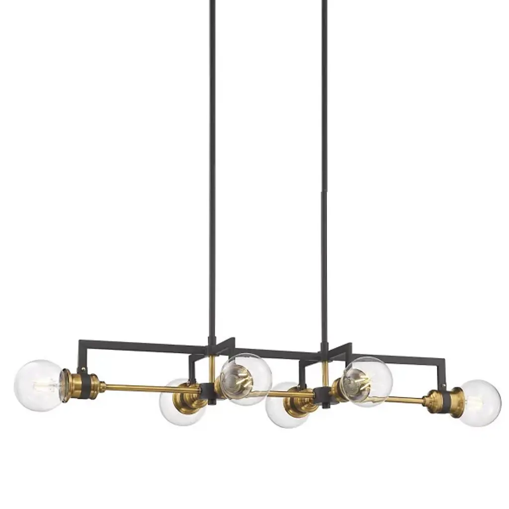 Clean and simple, the Sheldon Linear Suspension from Alder & Ore brings an appealing silhouette full of sharp angles to the décor of your modern home. Mounting directly to the ceiling, this piece descends with a pair of thin downrods that lead to a linear arrangement of crisp bulbs. The set of six bulbs in total are arranged in distinct directions to allow for a bright and full layer of light to spread throughout the space.