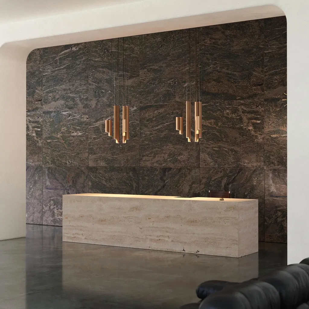 The Silo Atelier 03 Suspension Lamp is architectural lighting fixture that features custom-made aluminum extrusions. Its structure integrates 12 downlight sources, arranged to expand both vertically and horizontally, evoking the essence of brutalist architecture while maintaining a sleek and theatrical presence. The lamp is compatible with various dimming protocols, and offers a range of color temperatures with dim-to-warm functionality. Available in 5 finishes.