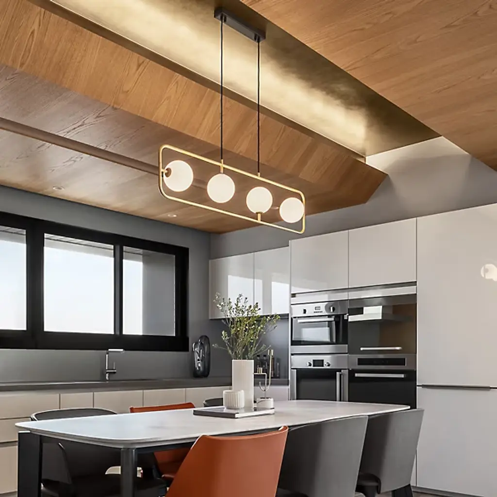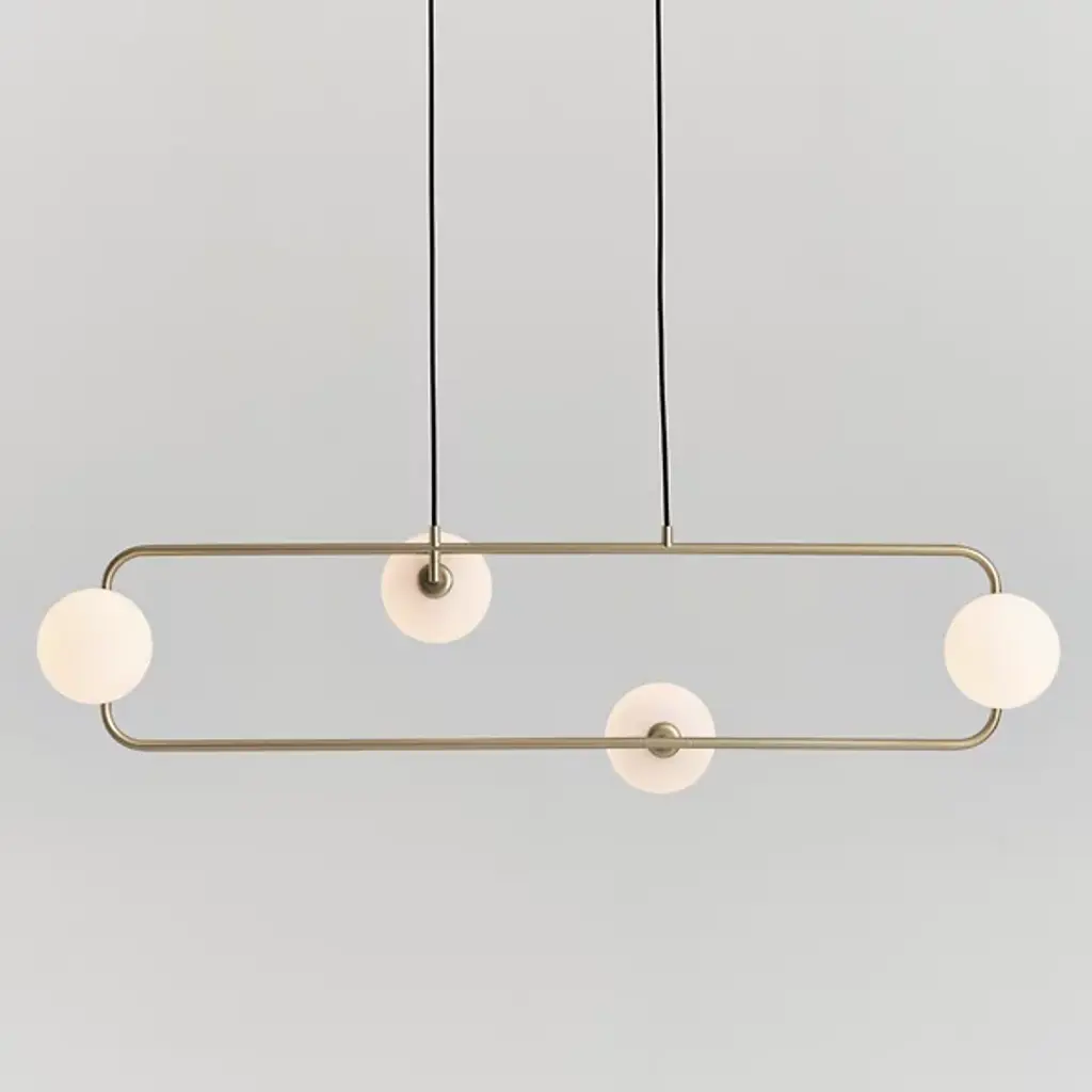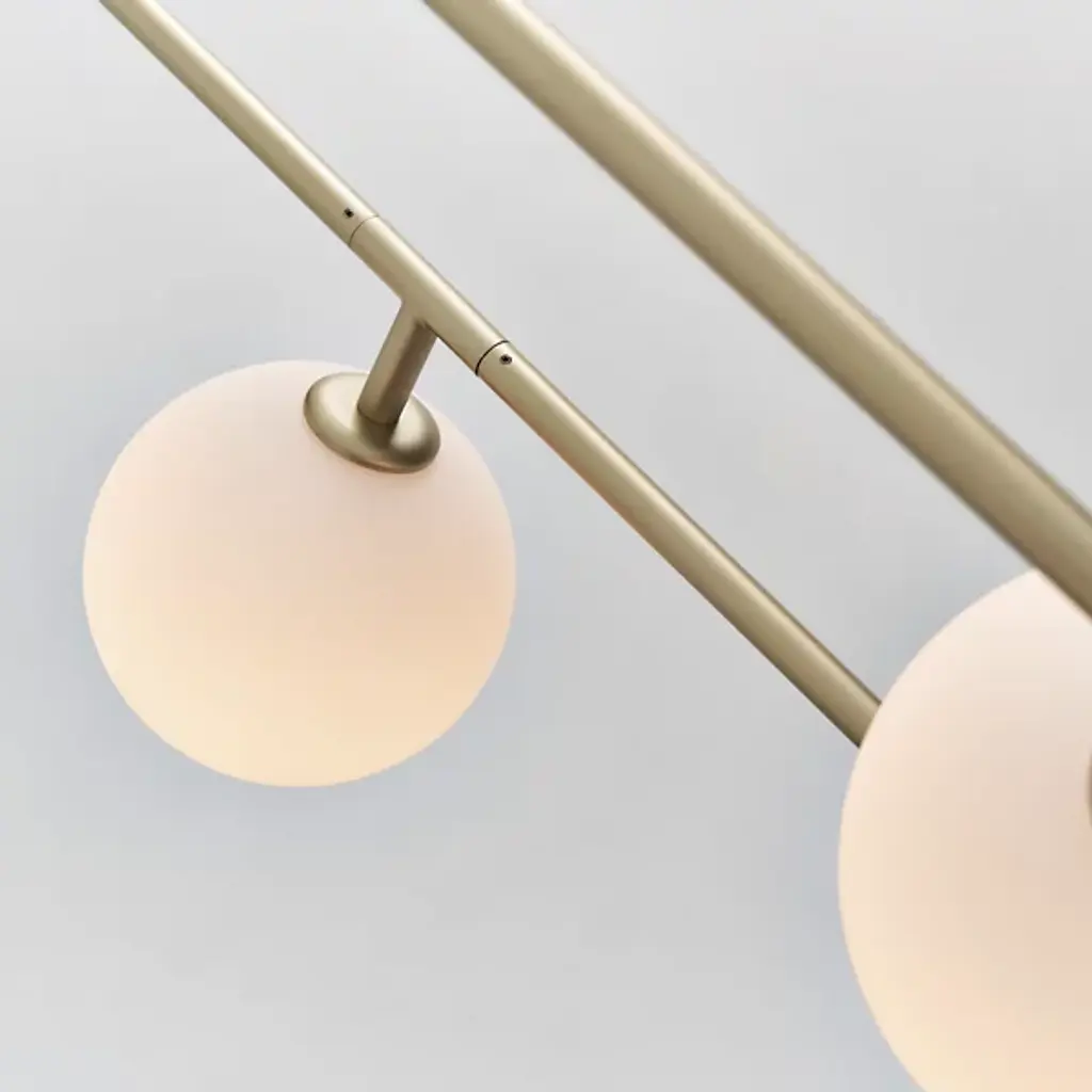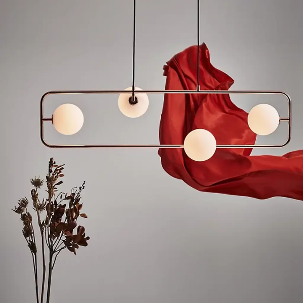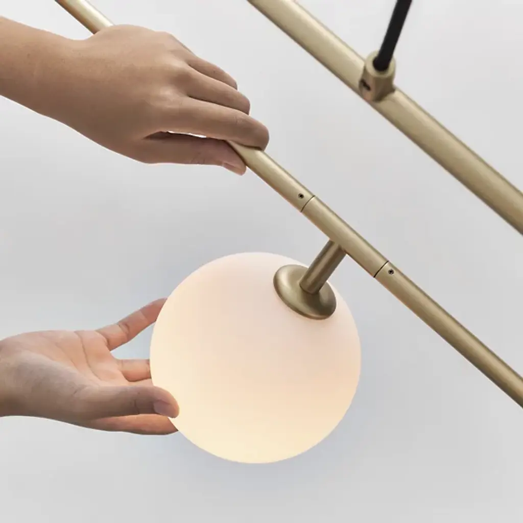 Bring to life the gradual movement and soothing light of the moon with the Sircle Linear Suspension from Seed Design. Designer Li, Hui Lun invites you to create your own floating composition as its shades swivel with great freedom. The beautiful globes are mouth-blown in a multi-layered process that helps them achieve their milky appearance. Using the eastern philosophical teaching of balance, its wide rectangular frame serves as the perfect complement to the soft curves of the shades. Turn the piece on for a sky-sweeping glow filled with warmth and energy. Choose from several finishes including the exclusive Copper version of this fixture.