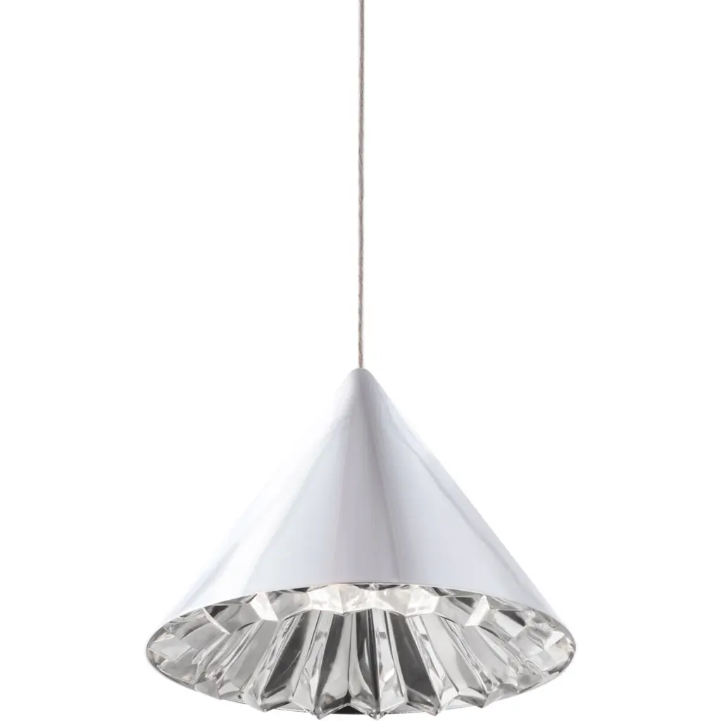 Marc Sadler explores the infinite possibilities of Slamp’s technopolymers with Accordèon, conjuring the image of a textile plissé or an accordion’s bellows. The collection is a sure marker of the new contemporary narrative that sees design, fashion, artisan technique and technology in permanent interaction. The LED crown, in 2.700 or 3.000 Kelvin according to choice, reaches up to 5.700 lumen, and can be dimmed.Size: Ø 57 cm x 20 cm / Ø 22-1/4” x H 7-3/4” maximum cable length 140 cm / 55”Available colors: Gold, silver and whiteMaterials: Lentiflex / Goldflex or SteelflexLight source: LED: 51W - 100~240V 5.700 Lumen 2700 Kelvin or 3.000 Kelvin Dimmable with: PWM, 0-10 or Potentiometer, USA version Triac Dimmable.