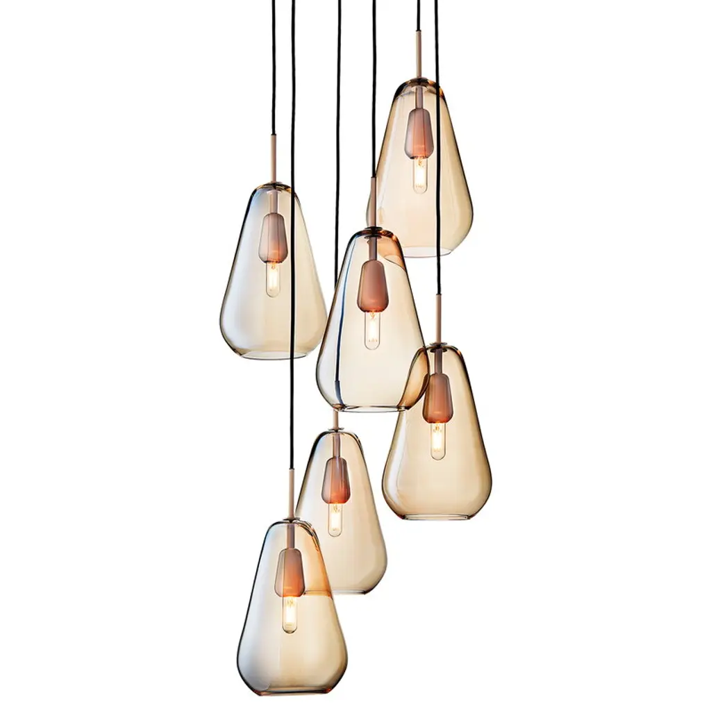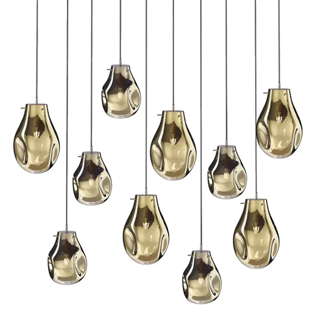 The Soap Linear Suspension from Bomma blends varied colors, transparency, and ever-changing shapes. When lit, its metallic sheen transforms into a stunning iridescent and translucent display, revealing the crystal. Handblown without a mold, a seemingly perfect drop of molten glass takes on a unique shape and color, making every piece unique. Create striking compositions by grouping multiple light fixtures or mixing their color schemes, adding a dynamic and artistic element to any space.