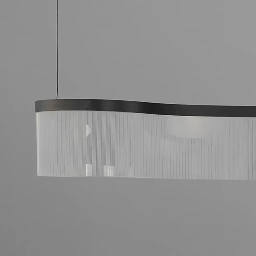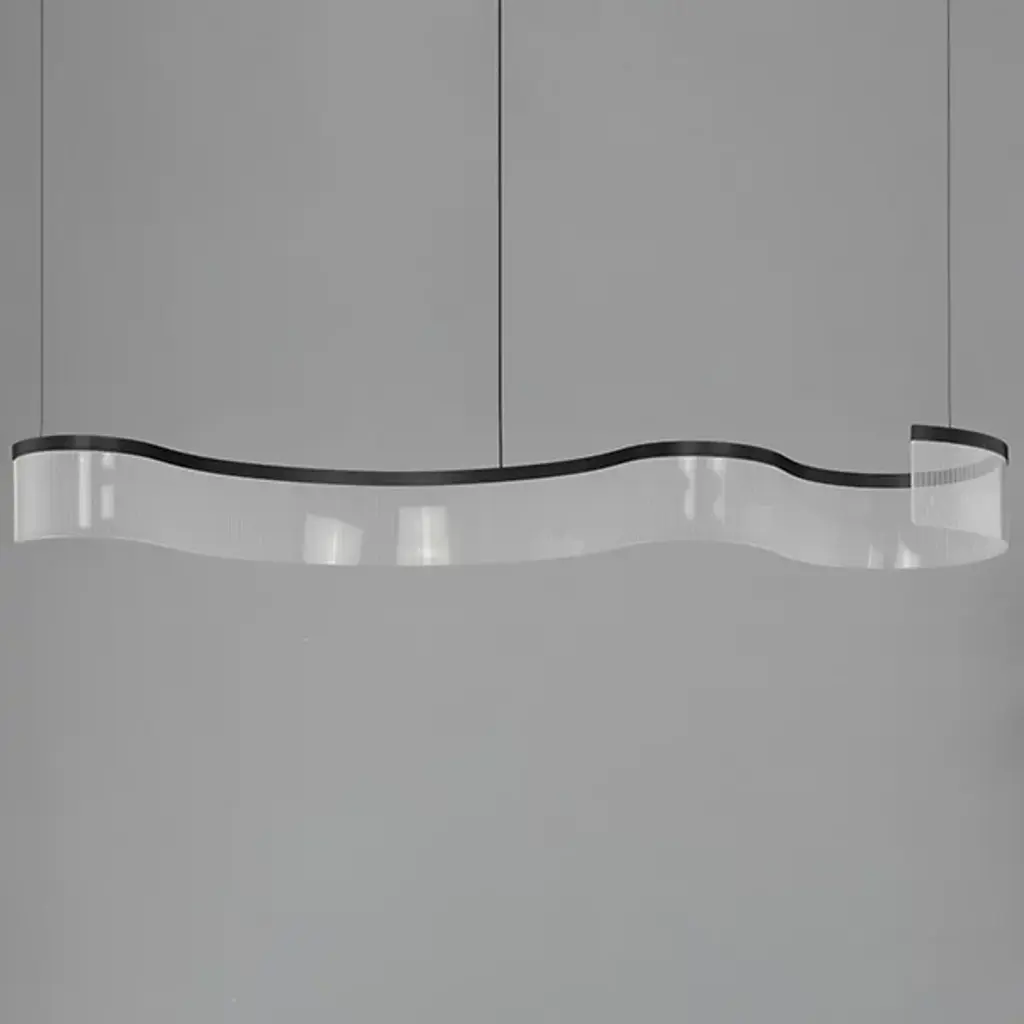 Transform your space with the Sonata LED Linear Suspension from ET2 Lighting. Elegant and enchanting, these pendants feature gently curving aluminum channels in Matte Black, supporting patterned translucent acrylic arranged in vertical stripes. The brilliant LED light, concealed within, illuminates the sculptural form, expressing a musical quality. Ideal for both classical and modern settings, this collection tells a captivating story through its simple yet striking design, adding a touch of brilliance to your space.