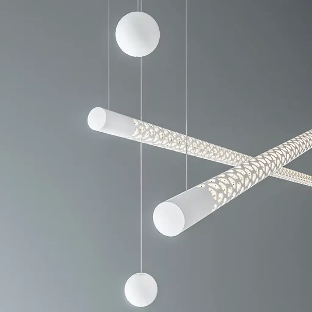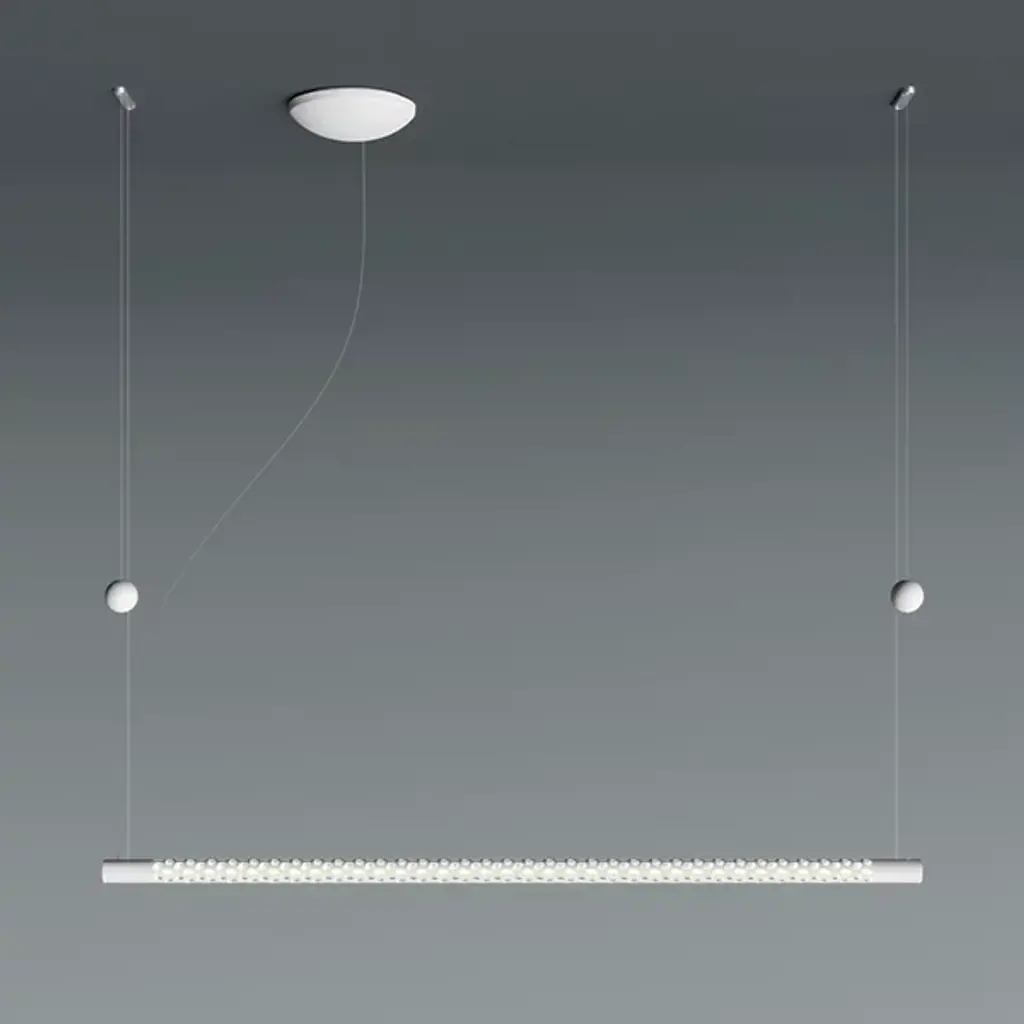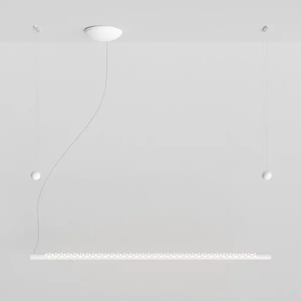 Provide a bright and even glow to the entire room around you with the Squiggle LED Linear Suspension from Rotaliana by Luminart. A simple and sleek piece, it consists of a lengthy, horizontal tube that comes to life as it seemingly floats in the room at the end of a set of thin wires. The exoskeleton hides an LED strip within that emits the layer of illumination, and a hexagon-shaped pattern rests on the surface, adding visual charm.