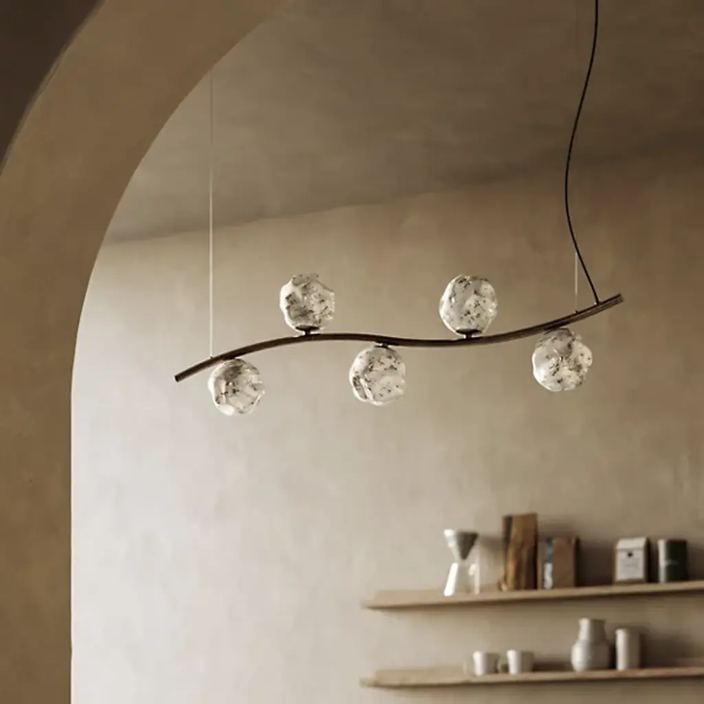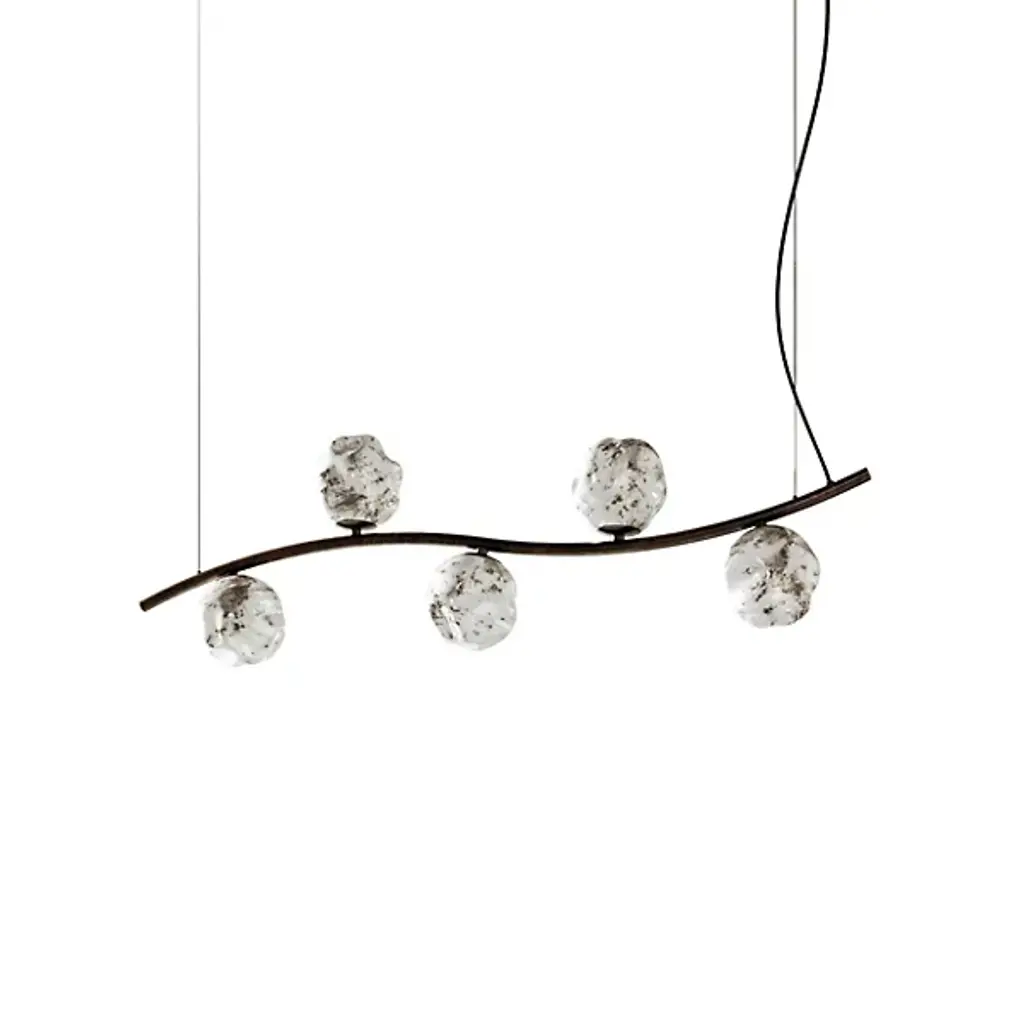 Bloom an elegant appeal across indoor settings with the Stone Linear Suspension from Il Fanale. An artisan-made fixture descending from subtle ceiling anchors via slim cables, it uses a curving metal “branch” to support strong lamping beneath rounded shades of translucent glass. Each diffuser is handblown by artisans, making it subtly distinct from any others and taking on the look of a sun-washed river rock, gently shaped by time and natural forces, to dispense an unforgettable ambiance around it.