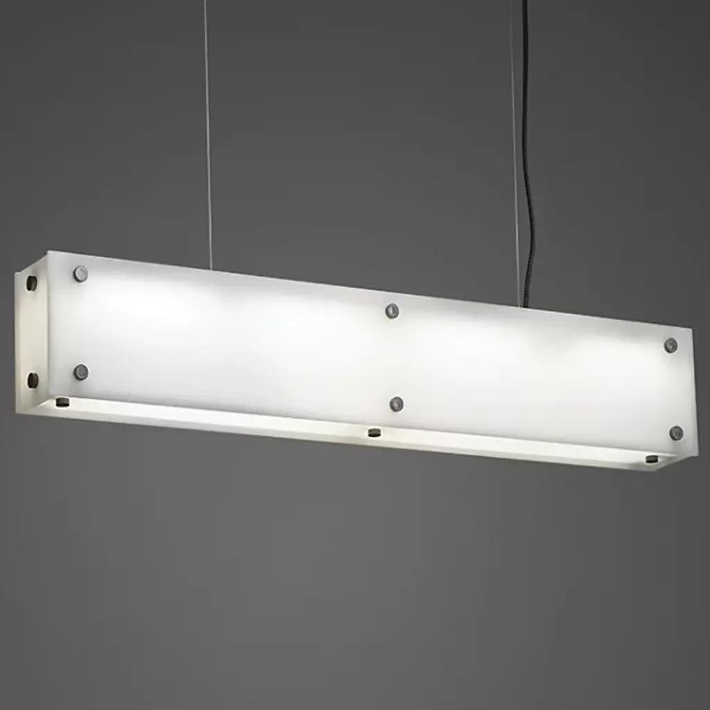 With its sleek, geometric styling and versatile array of available shade colors, the Strata 17369 LED Linear Suspension by Ultralights is the ideal centerpiece for modern offices and dining spaces. Its rectangular silhouette features Acrylic paneling which diffuses light from an integrated LED source for a soft, even ambiance. Dark Iron modern caps provide a decorative contrast for the piece, giving depth and dimension to its otherwise seamless appearance.