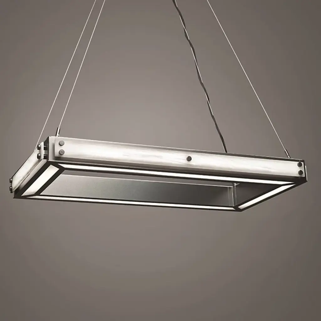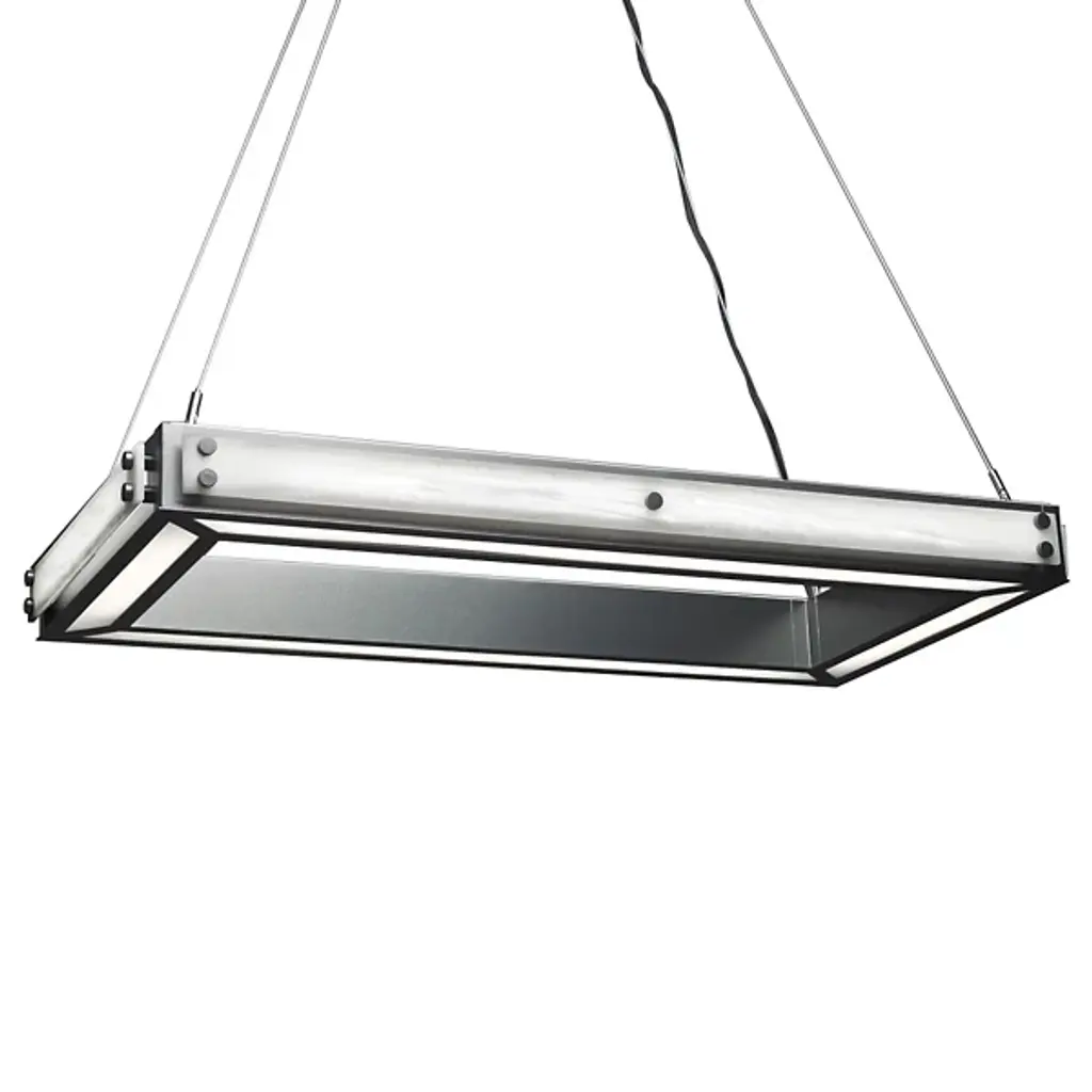 The Strata LED Linear Suspension by Ultralights adds a crisp and tailored touch to spaces with an airy composition. A rectangular frame floats effortlessly with layered bands along its outer edge, each supported and dressed up with grommet detailing. Along the bottom of this angular halo, acrylic diffusers lend a soft touch to energy-efficient light sources, casting an even layer of illumination onto surroundings. Simple and confident, this chandelier makes a bright statement with a simple design, beautifully blending together form and function.