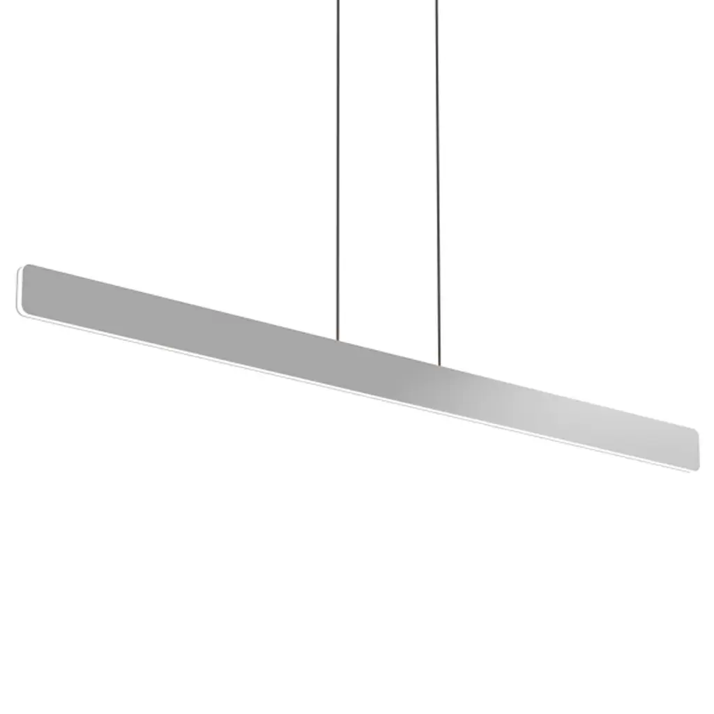 A minimalist dream realized as a stunning suspension. Grace your dining table or kitchen island with the cool contours of the Sub LED Linear Suspension from Koncept. Its silhouette is marked by a rectangular shape, softened along the edges to create a pleasant sense of flow and fluidity. Sleek wiring adds a subtle yet graphic hint to the aerodynamic piece. LEDs wrap around every edge of the metal housing, giving rooms truly multi-directional lighting. A continuous outline of crisp LED light radiates out, neat and glare-free.