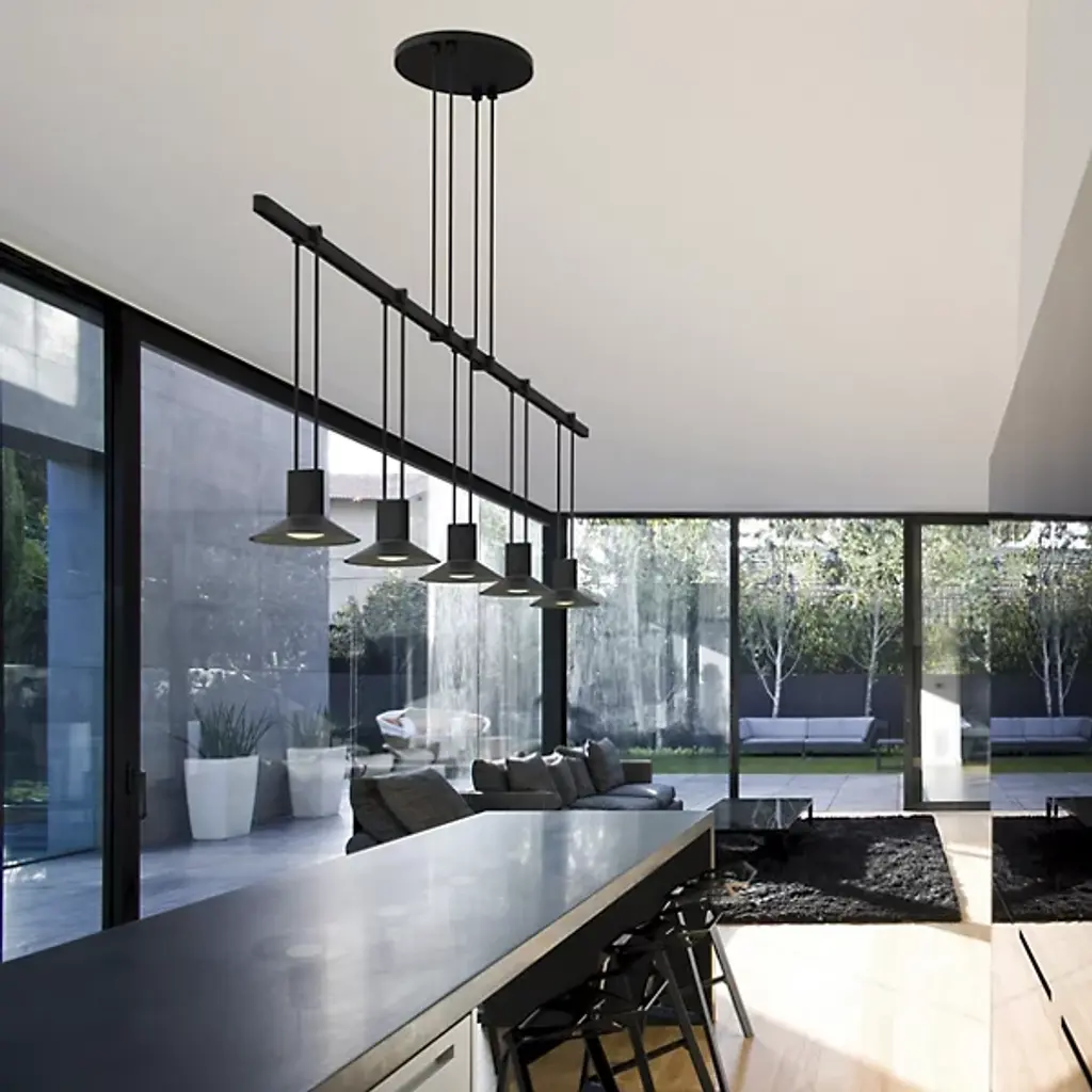The endlessly customizable Suspenders 36" 1-Tier 5-Light Linear Suspension by SONNEMAN Lighting gives you the freedom to fit modern, energy-efficient lighting in any living space. Its starting design consists of a 36” metal Power Bar with five suspended, evenly-spaced LED luminaires (via adjustable 12” hangers). The bar itself is supported by two 18” field-cuttable hangers that connect to a ceiling-mounted Power Feed with an outlet box transformer. Many luminaire options are available as well, each providing an illumination that is as unique as it is useful.