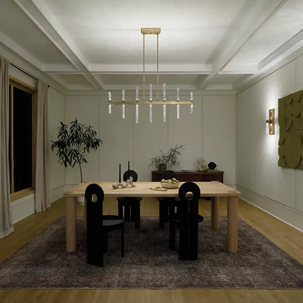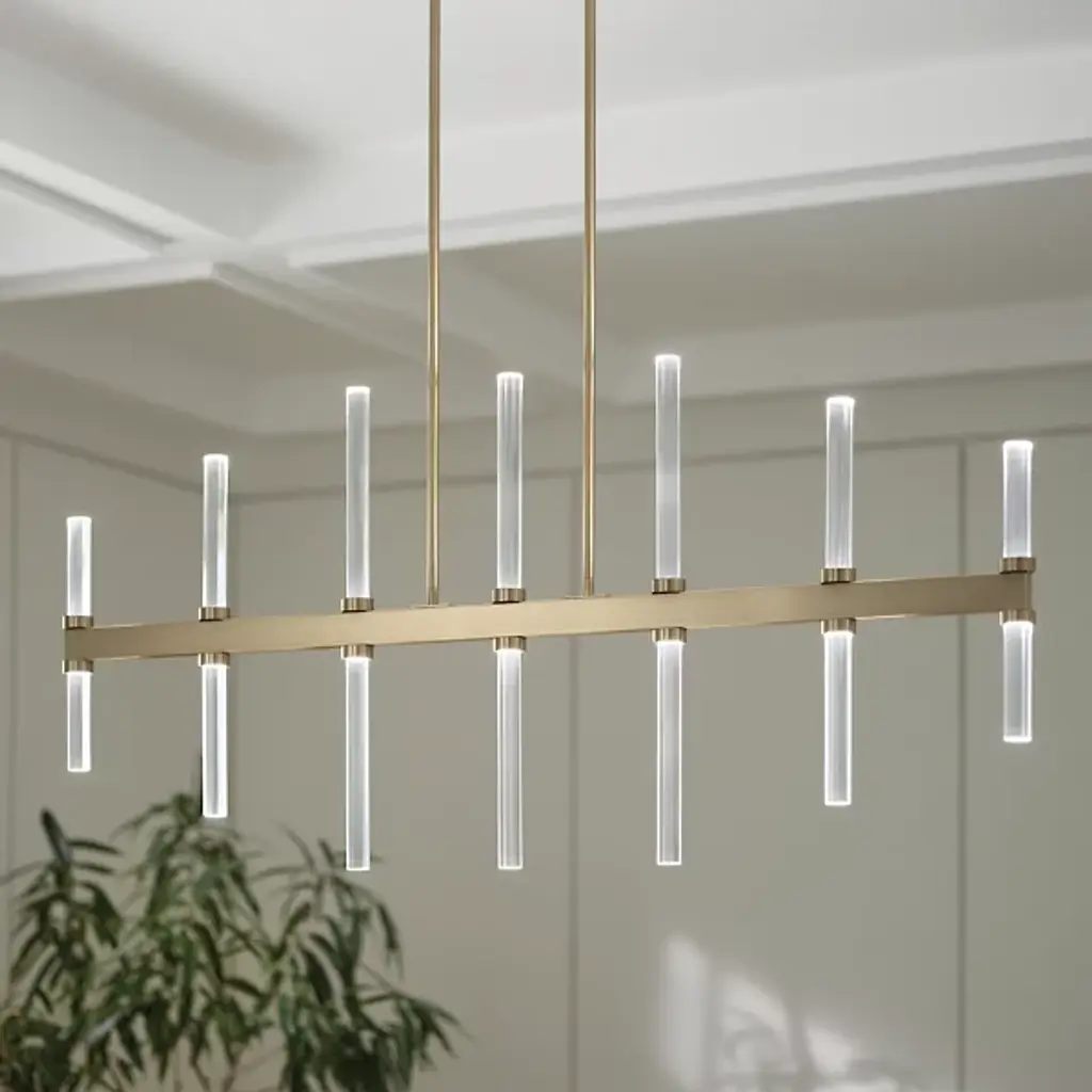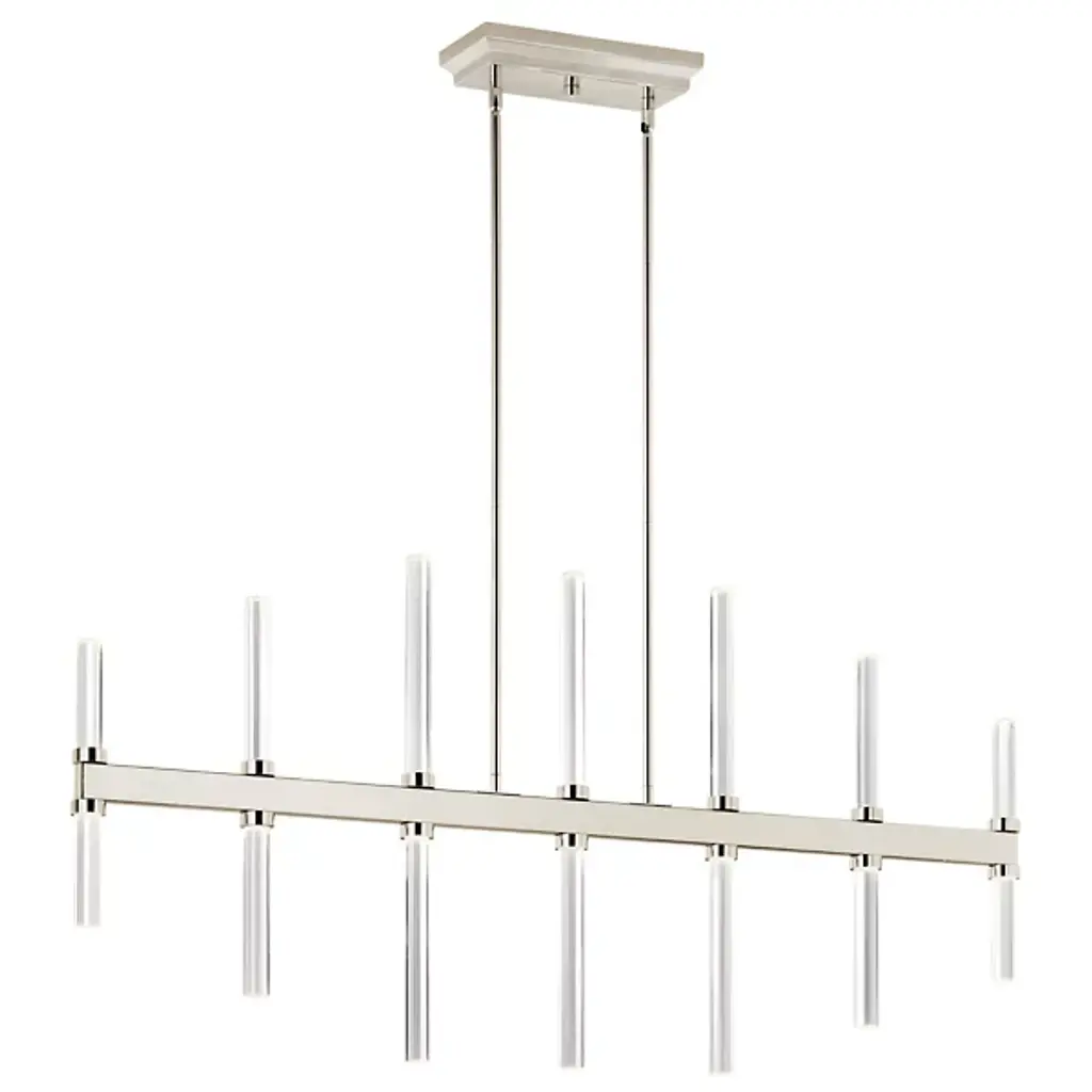 Experience pure sophistication with the Sycara LED Linear Suspension by Kichler, inspired by the ethereal light pillars of ice crystals. Octagonal-shaped crystals evoke celestial formations, casting captivating patterns on ceilings and walls when illuminated. Delicately balanced LED faceted crystal rods on each arm create a mesmerizing interplay of light, captivating the gaze and offering a sensory experience beyond ordinary illumination. Immerse yourself in the elegance and allure of Sycara—a testament to refined design and captivating aesthetics.
