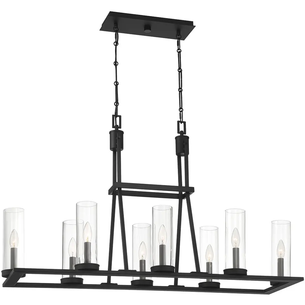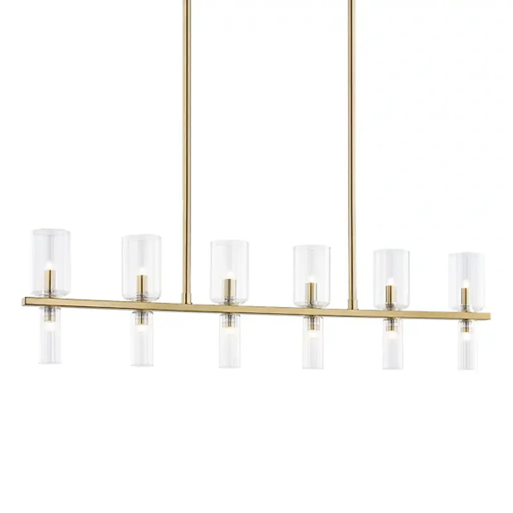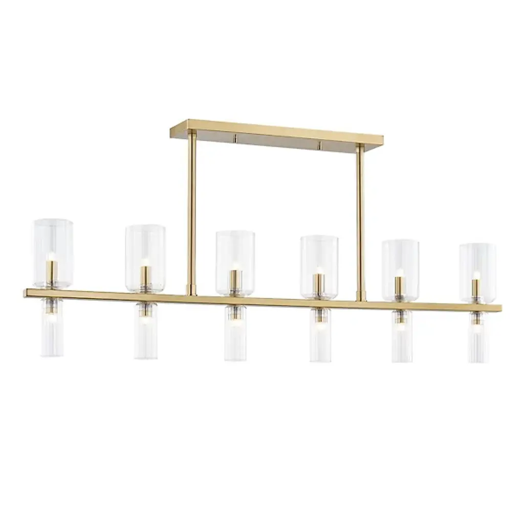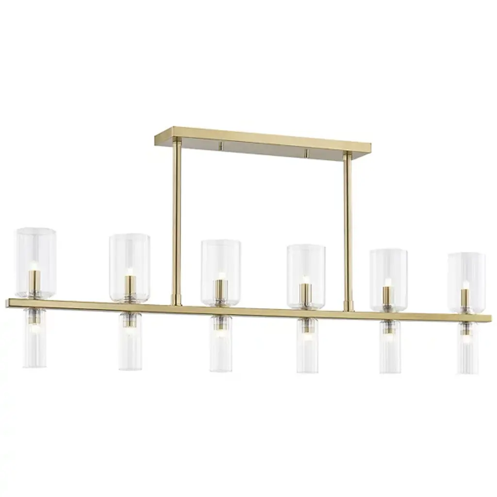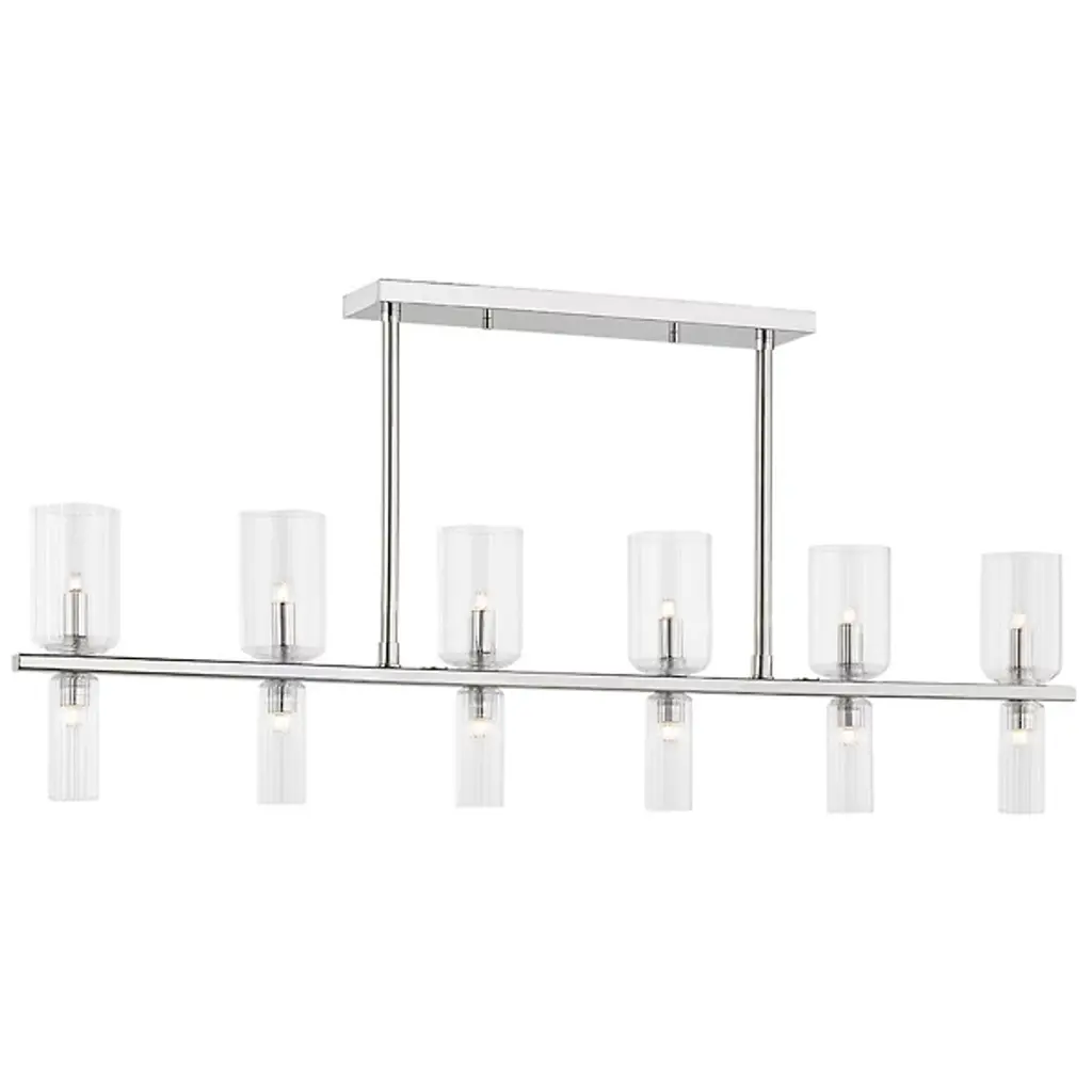 The impeccable Tabitha Linear Suspension from Mitzi by Hudson Valley combines classic elements in a way that’s distinctly modern in every way. A large statement piece that adheres to a sense of minimalism without washing away in a large room, this fixture is framed in rugged Finished Steel with a square mount for a solid look. This frame is used to display a collection of Textured Clear Glass cloche shades, arranged in an up-and-down motif in two sizes to create a pleasing visual effect. Add filament style round candelabra bulbs and you get a soft light effect that gives new life to bar tops, counters, kitchen islands and more.