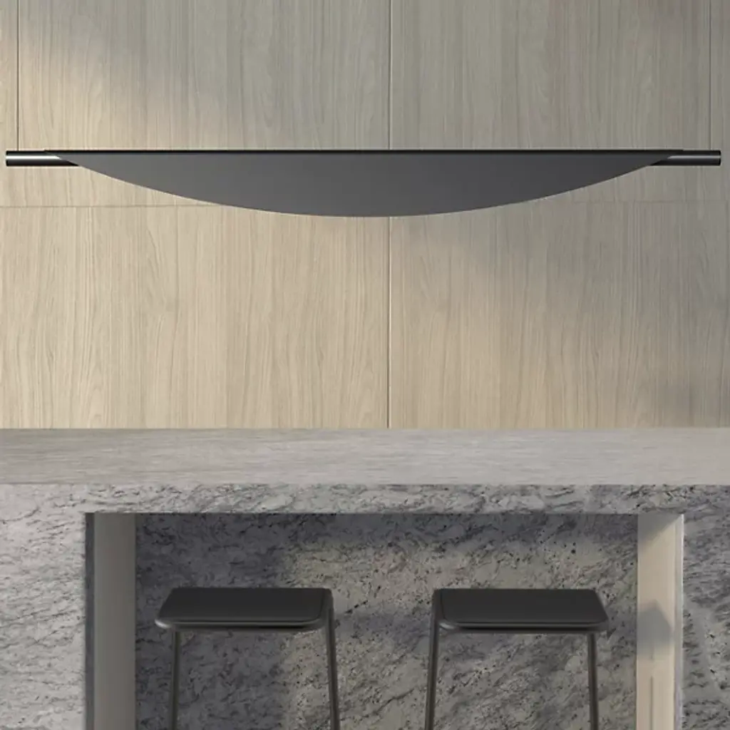 A fashionably functional metallic drape. The Tela LED Linear Suspension by SONNEMAN was designed to recreate the soft look of draped fabric, but using a much harder material. The shade is a curved Metal panel that’s folded gently over a long supporting Metal rod. Functionally, the shade manages to discreetly house the integrated LED and to focus most of its bright light downward. The bright functional downlight, paired with the soft simplicity of the overall design, make this linear suspension a smart and stylish choice over any long and modern workspace, be it a kitchen island, dining table or conference table.