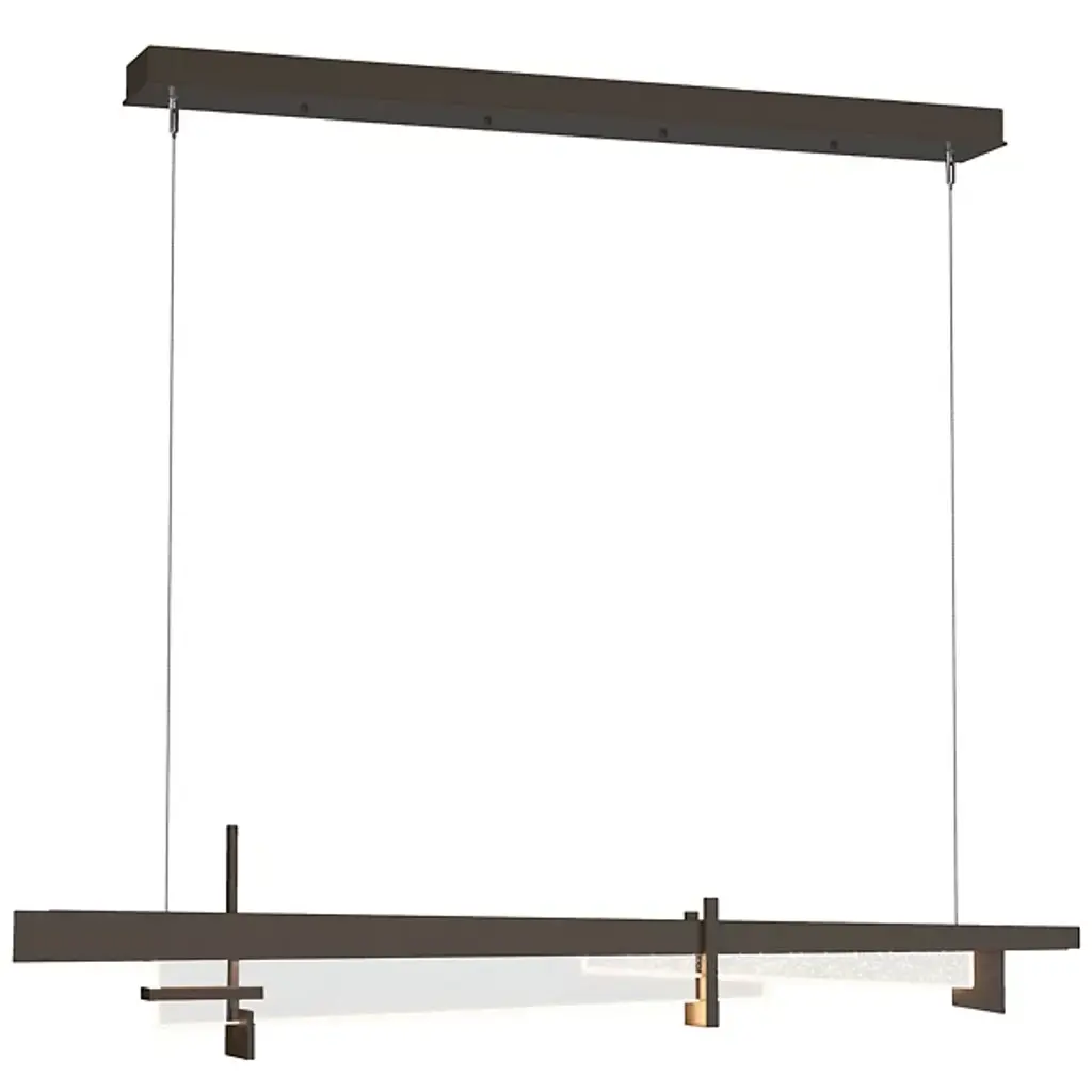 Ideal for its angular designs and slim profile, the Tenon LED Linear Suspension by Hubbardton Forge is a perfect lighting piece for contemporary interior living spaces. Built into a thin, elongated form to allow for even distribution of lighting, the fixture makes extensive use of its integrated and energy-efficient LED lamping as well as its thick, clear glass and thin cables for discrete and cohesive aesthetic. The fixture is best suited for use in spaces like conference rooms, kitchen islands, and dining areas.