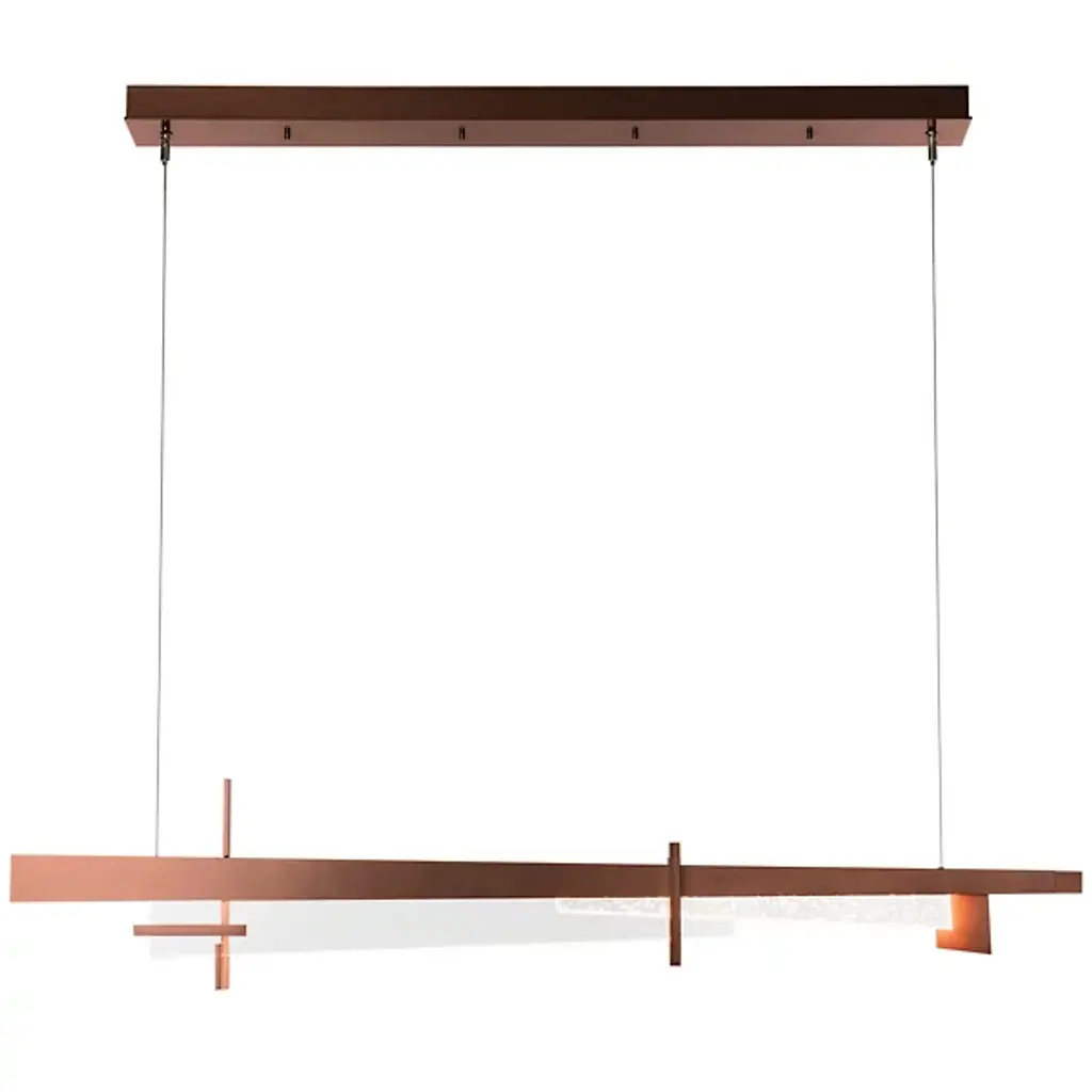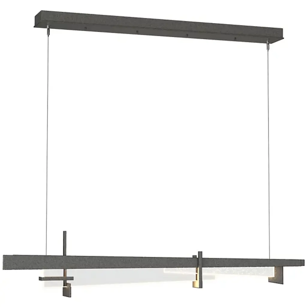 Ideal for its angular designs and slim profile, the Tenon LED Linear Suspension by Hubbardton Forge is a perfect lighting piece for contemporary interior living spaces. Built into a thin, elongated form to allow for even distribution of lighting, the fixture makes extensive use of its integrated and energy-efficient LED lamping as well as its thick, clear glass and thin cables for discrete and cohesive aesthetic. The fixture is best suited for use in spaces like conference rooms, kitchen islands, and dining areas.