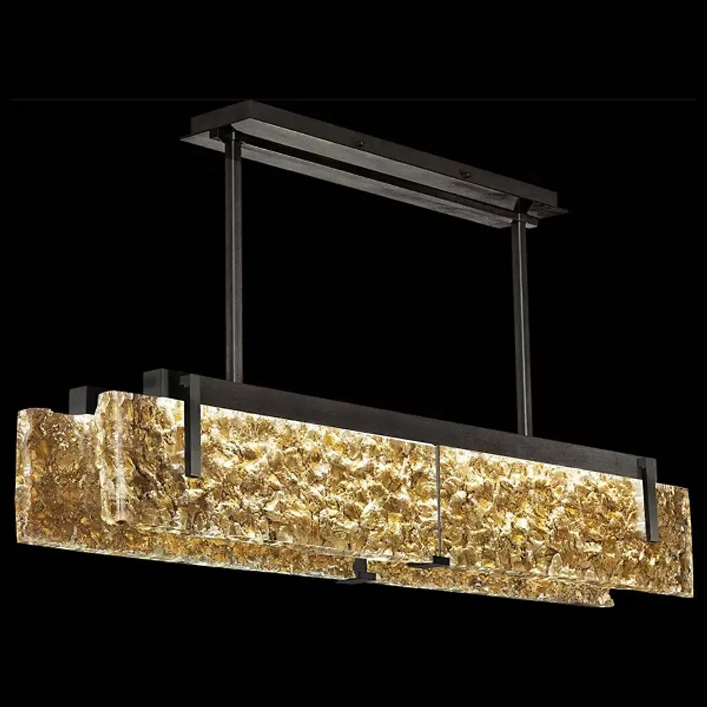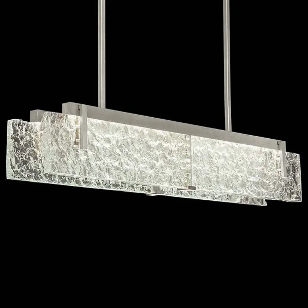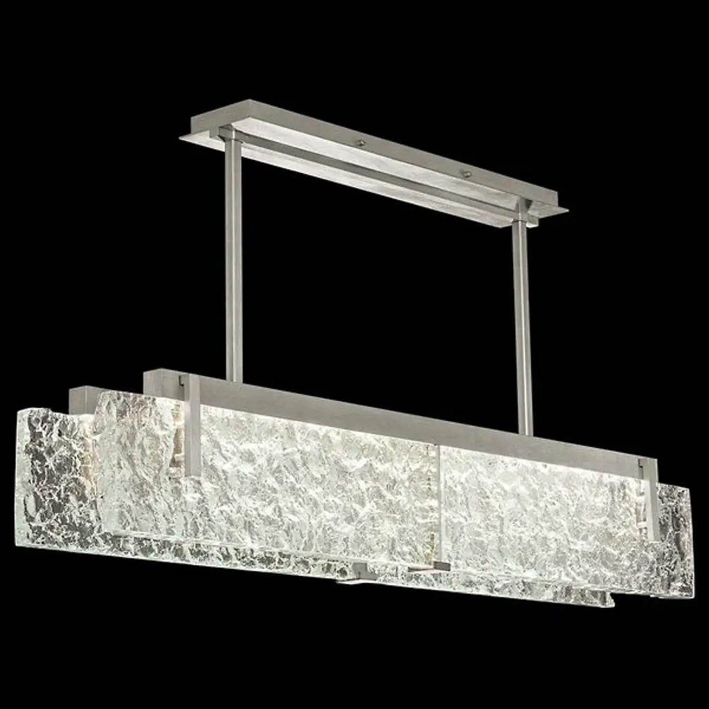 The Terra LED Linear Suspension by Fine Art Handcrafted Lighting features parallel forms of rich, textured, hand-cast crystal. The suspension’s crystal panes give your living space a contemporary look while providing surroundings with ample amounts of LED light. Your hanging fixture maintains its midair suspension through attachment to a ceiling canopy.