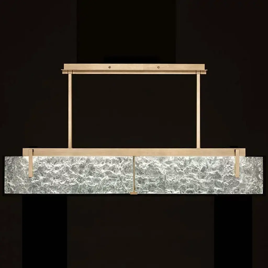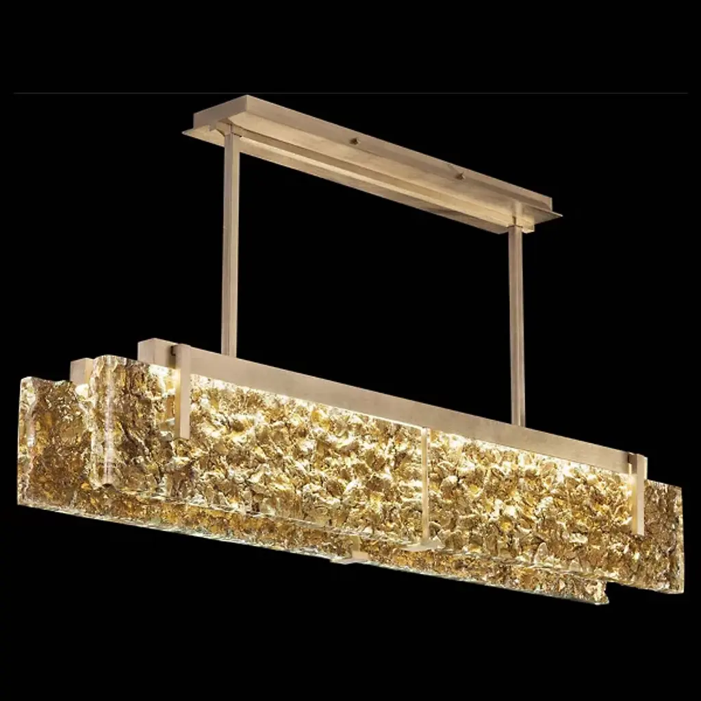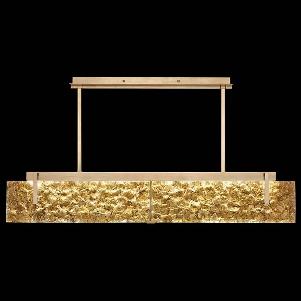 The Terra LED Linear Suspension by Fine Art Handcrafted Lighting features parallel forms of rich, textured, hand-cast crystal. The suspension’s crystal panes give your living space a contemporary look while providing surroundings with ample amounts of LED light. Your hanging fixture maintains its midair suspension through attachment to a ceiling canopy.