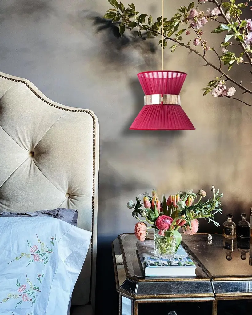 TIFFANY The first one, Audrey inspired the iconicIntroducing Sabrina's breathtaking collection of Tiffany lamps.Year after year Sabrina Landini perpetuates its exceptional expertise, offering much more than a lamp – a touch of originality.Nearly 25 years ago, the first Tiffany lamps were crafted in Sabrina Landini' s workshop, just a stone's throw away from the Milano Navigli. At the House we believe in once-in-a-lifetime Tiffany, the iconic.With its delicate interplay of materials and lines, Tiffany celebrates the art of dazzling and brightening the lives of those you love.The eye-catching glass belt, secretly performed in our Atelier, the variety of silk’ colors and the smooth brass finish, confer uniqueness and natural charme.The perfect balance of allure and sophistication to enrich all kinds of interiors.CE certified and Electrified : US, EU, UK, dimmableAvailable in the lampshade diameter : 23, 30, 40, 60, 80 cm