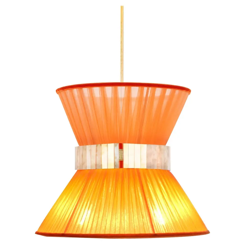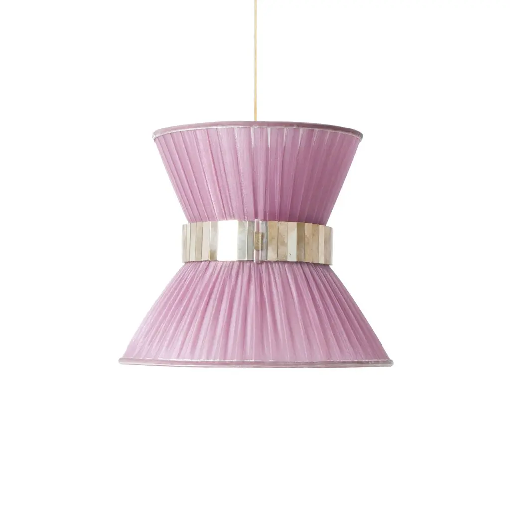 TIFFANY The first one, Audrey inspired the iconicIntroducing Sabrina's breathtaking collection of Tiffany lamps.Year after year Sabrina Landini perpetuates its exceptional expertise, offering much more than a lamp – a touch of originality.Nearly 25 years ago, the first Tiffany lamps were crafted in Sabrina Landini' s workshop, just a stone's throw away from the Milano Navigli. At the House we believe in once-in-a-lifetime Tiffany, the iconic.With its delicate interplay of materials and lines, Tiffany celebrates the art of dazzling and brightening the lives of those you love.The eye-catching glass belt, secretly performed in our Atelier, the variety of silk’ colors and the smooth brass finish, confer uniqueness and natural charme.The perfect balance of allure and sophistication to enrich all kinds of interiors.CE certified and Electrified : US, EU, UK, dimmableAvailable in the lampshade diameter : 23, 30, 40, 60, 80 cm