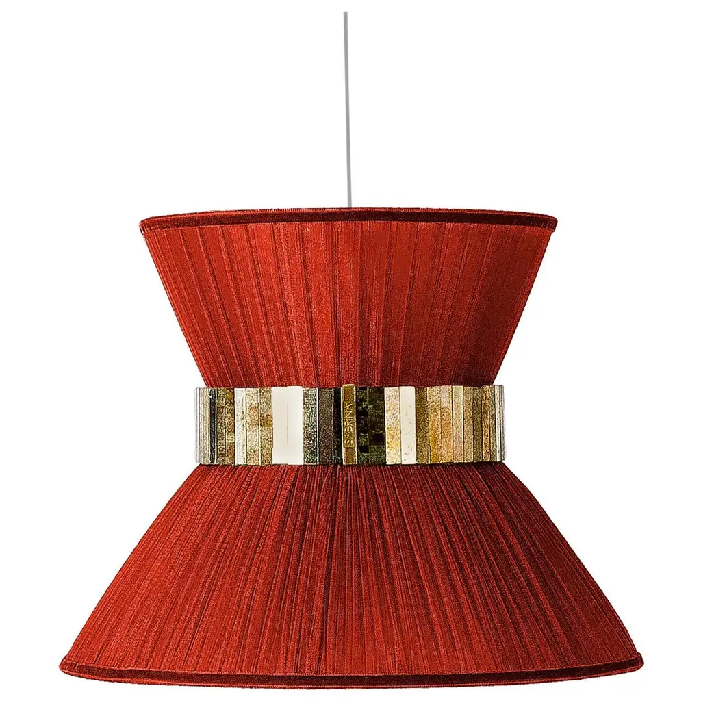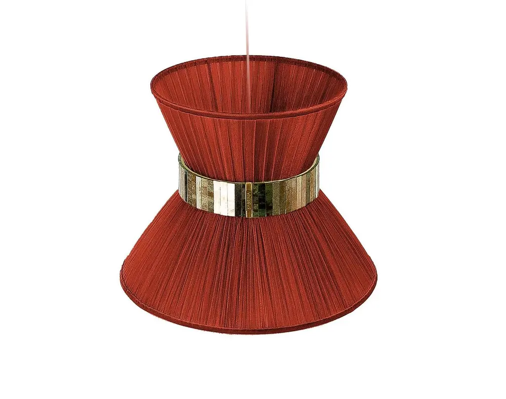 Tiffany Contemporary Hanging Lamp 30, Rust Red Silk Silvered Glass, Brass