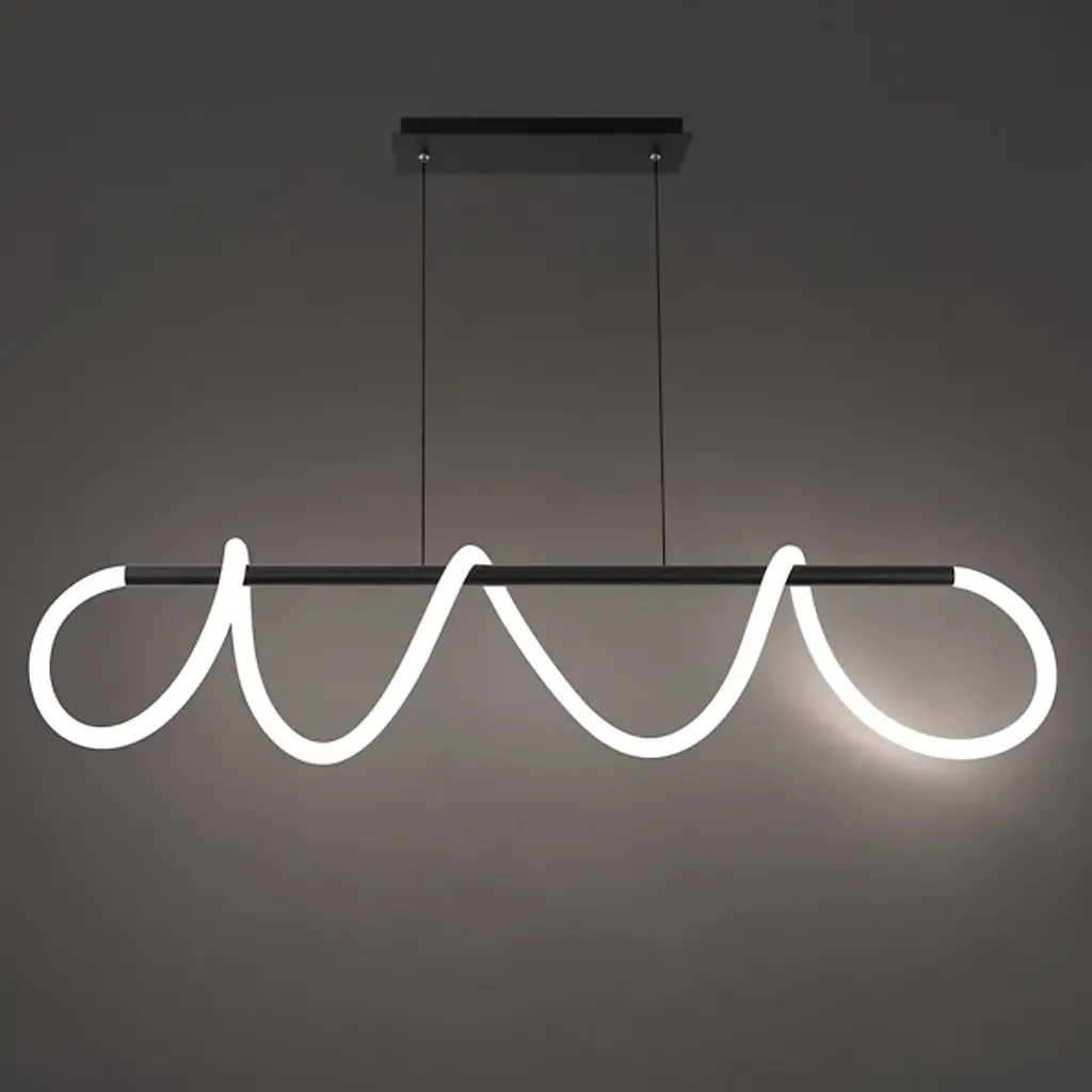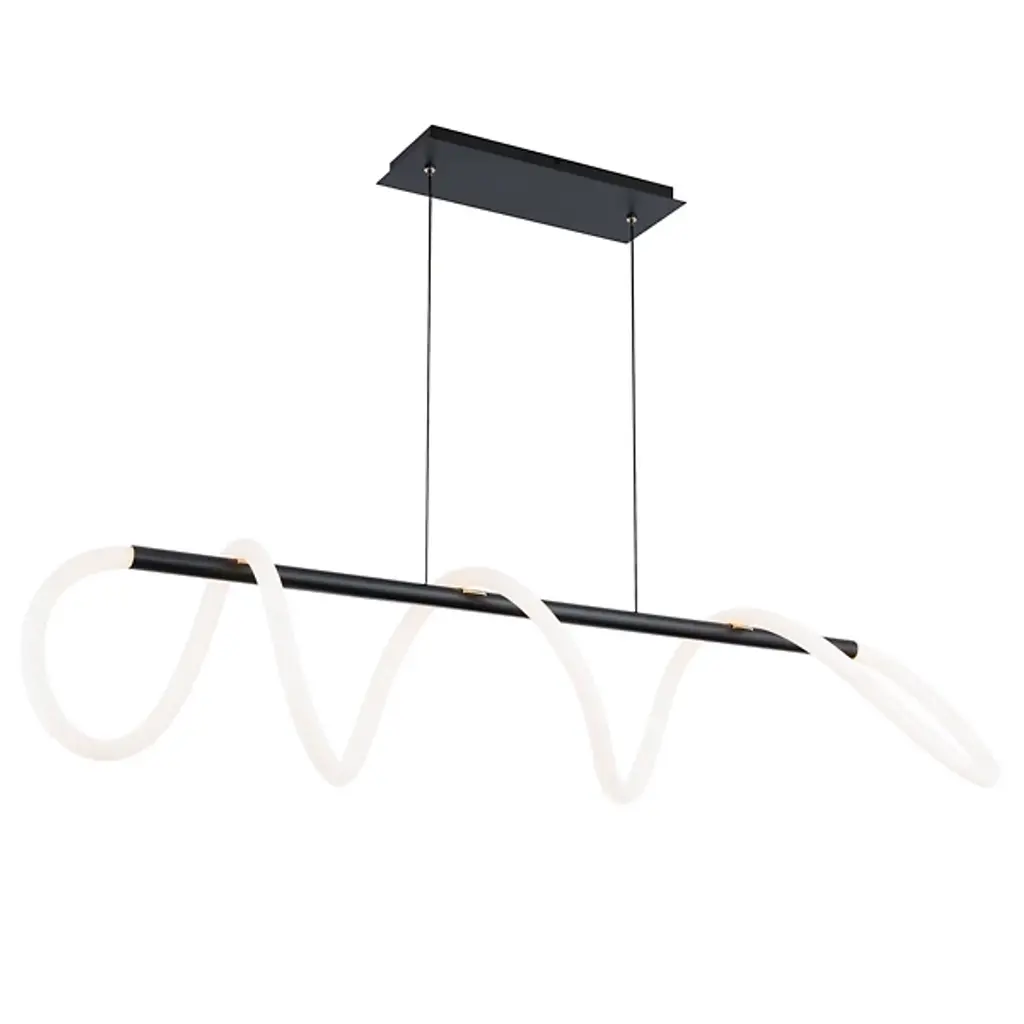 The Tightrope LED Linear Suspension by dweLED has a minimal, modern feel that walks the line between form and function. A set of slender cables suspends this design from a thin canopy for an airy, clean look as a gracefully curved silicone diffuser wraps itself around a linear, aluminum bar. Artfully draped and adjustable, this silicone diffuser emits a soft, omnidirectional layer of energy-efficient illumination that offers both a bright touch and a playful, looped structure to spaces.