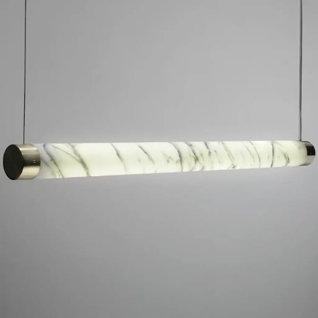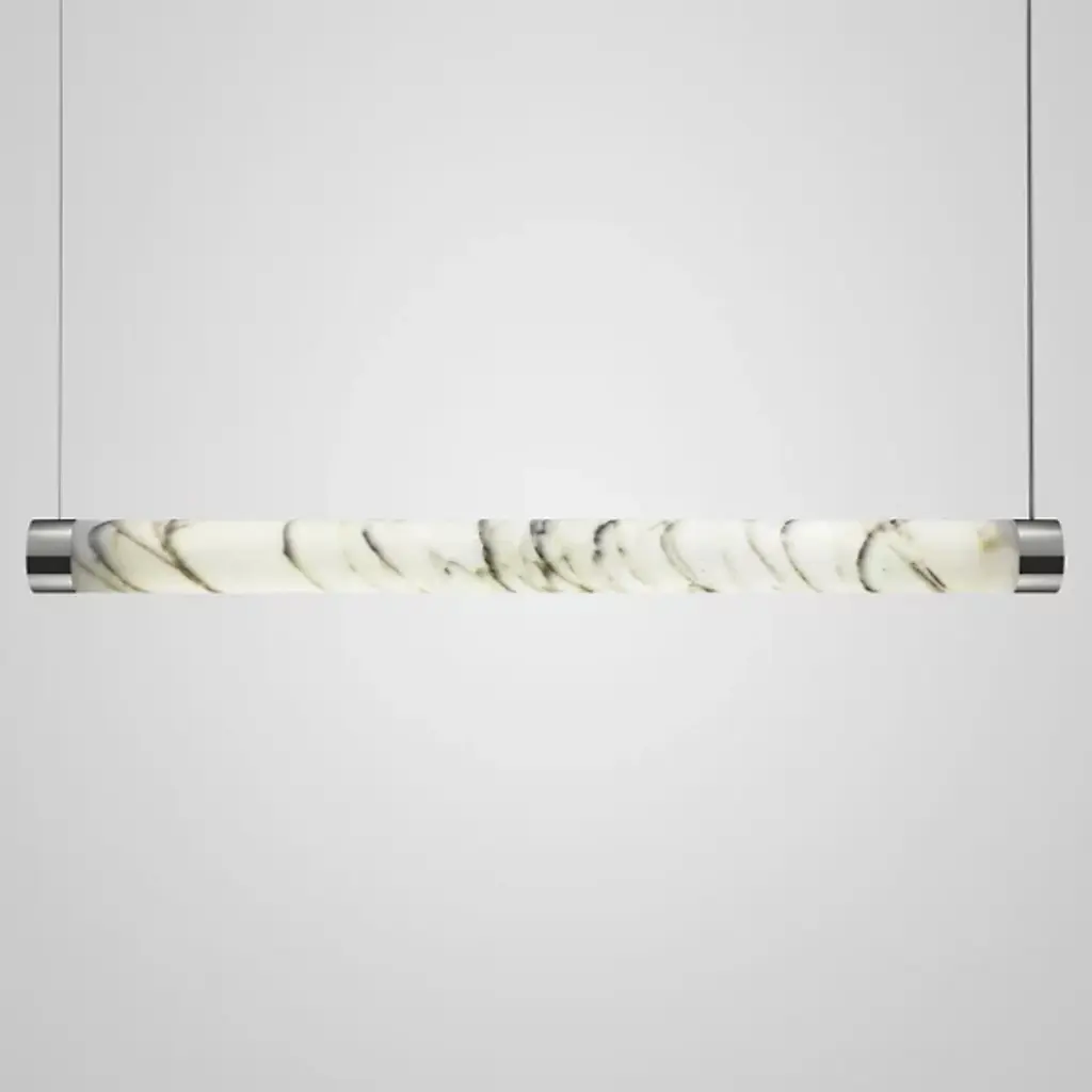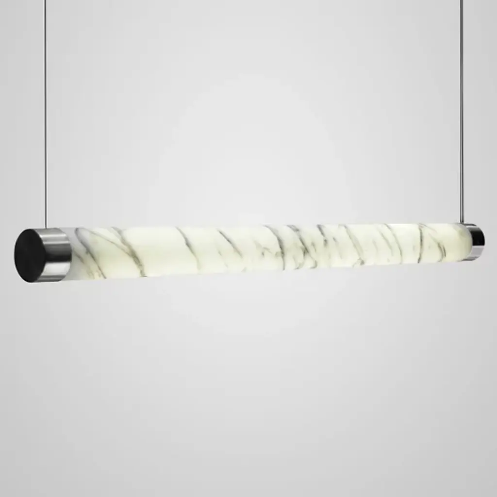 The Lee Broom Tube LED Linear Suspension is an ambitious fixture masterfully milled from a single piece of Carrara marble—a material regarded as a symbol of status and refinement since antiquity. Sourced from Italy, the marble diffuser glows from within like a long fluorescent tube, illuminated with an innovative strip of LEDs that highlight the variegated veins unique to each piece. Capped with brushed brass cylinders, Lee Broom sets a new paradigm for the traditional material, emphasizing the natural beauty in marble with a contemporary edge.