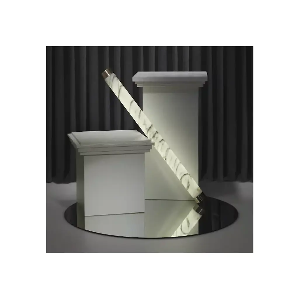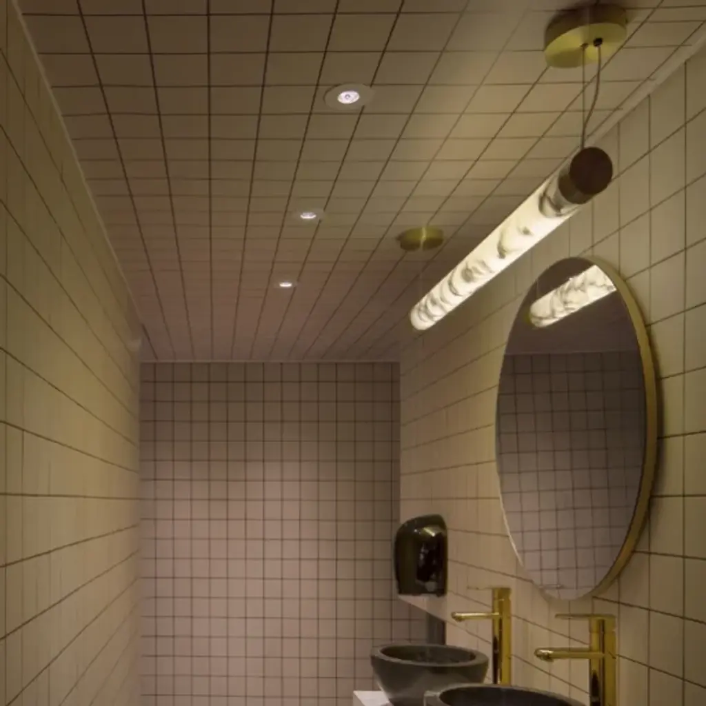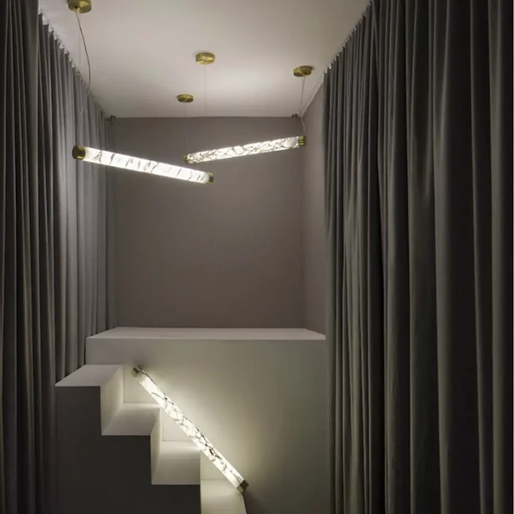 The Lee Broom Tube LED Linear Suspension is an ambitious fixture masterfully milled from a single piece of Carrara marble—a material regarded as a symbol of status and refinement since antiquity. Sourced from Italy, the marble diffuser glows from within like a long fluorescent tube, illuminated with an innovative strip of LEDs that highlight the variegated veins unique to each piece. Capped with brushed brass cylinders, Lee Broom sets a new paradigm for the traditional material, emphasizing the natural beauty in marble with a contemporary edge.