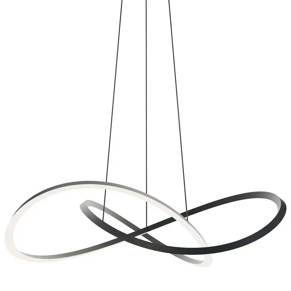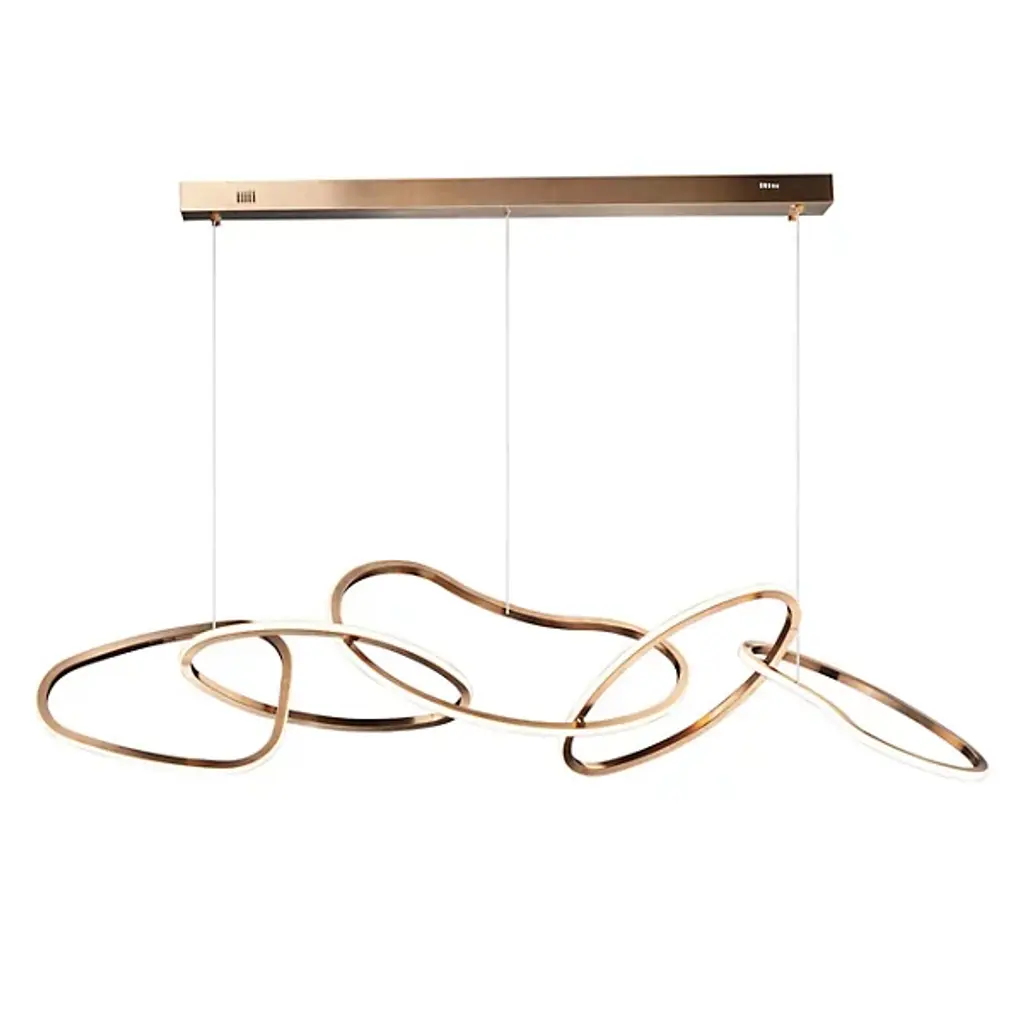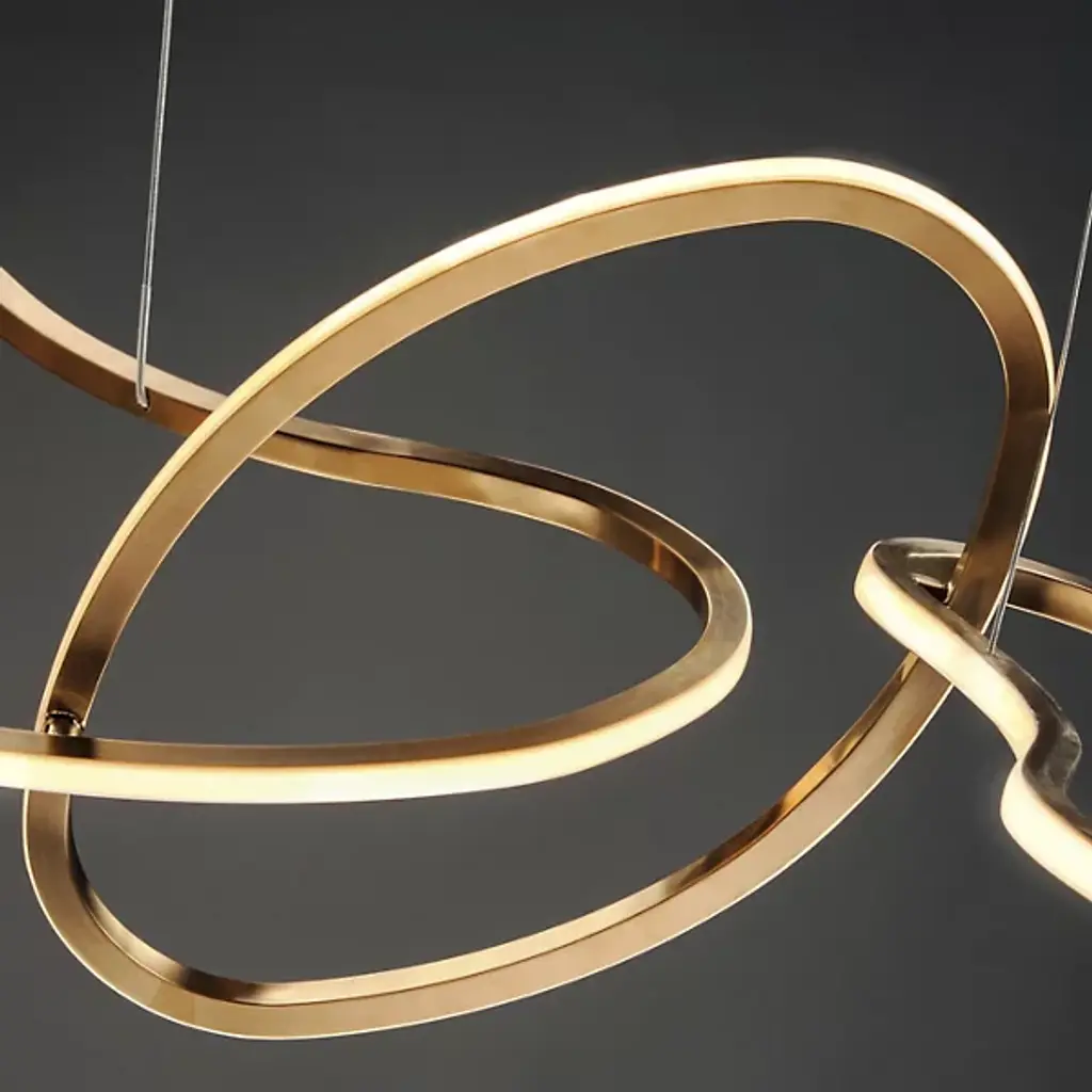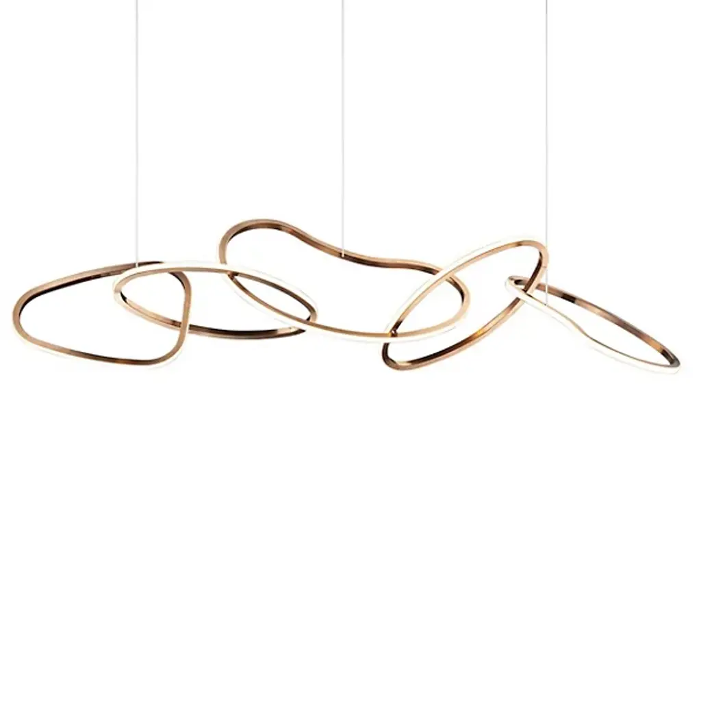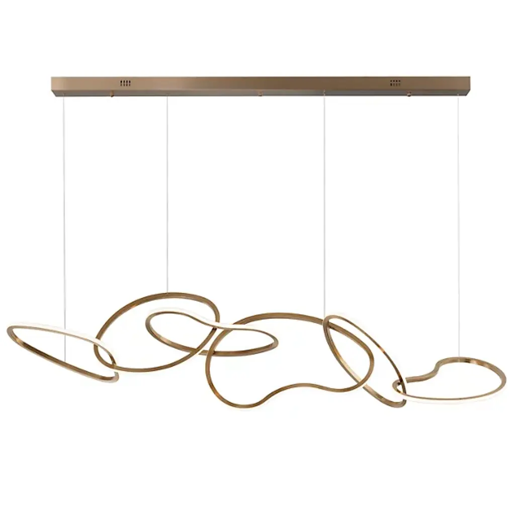 Unique and eye-catching, the Unity LED Linear Suspension from ET2 Lighting presents an abstract display of linked rings, each one flawed and misshapen for a visually-pleasing display that brings casual sophistication to the room. Three of the rings are suspended by thin wires that create a floating image. The outer surface of each ring is adorned with an integrated, energy-efficient LED that brings a full, even glow to the space that tastefully flows throughout the space.