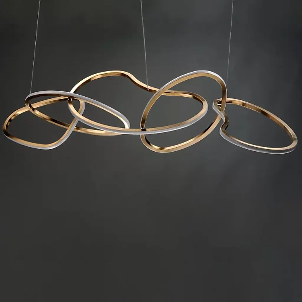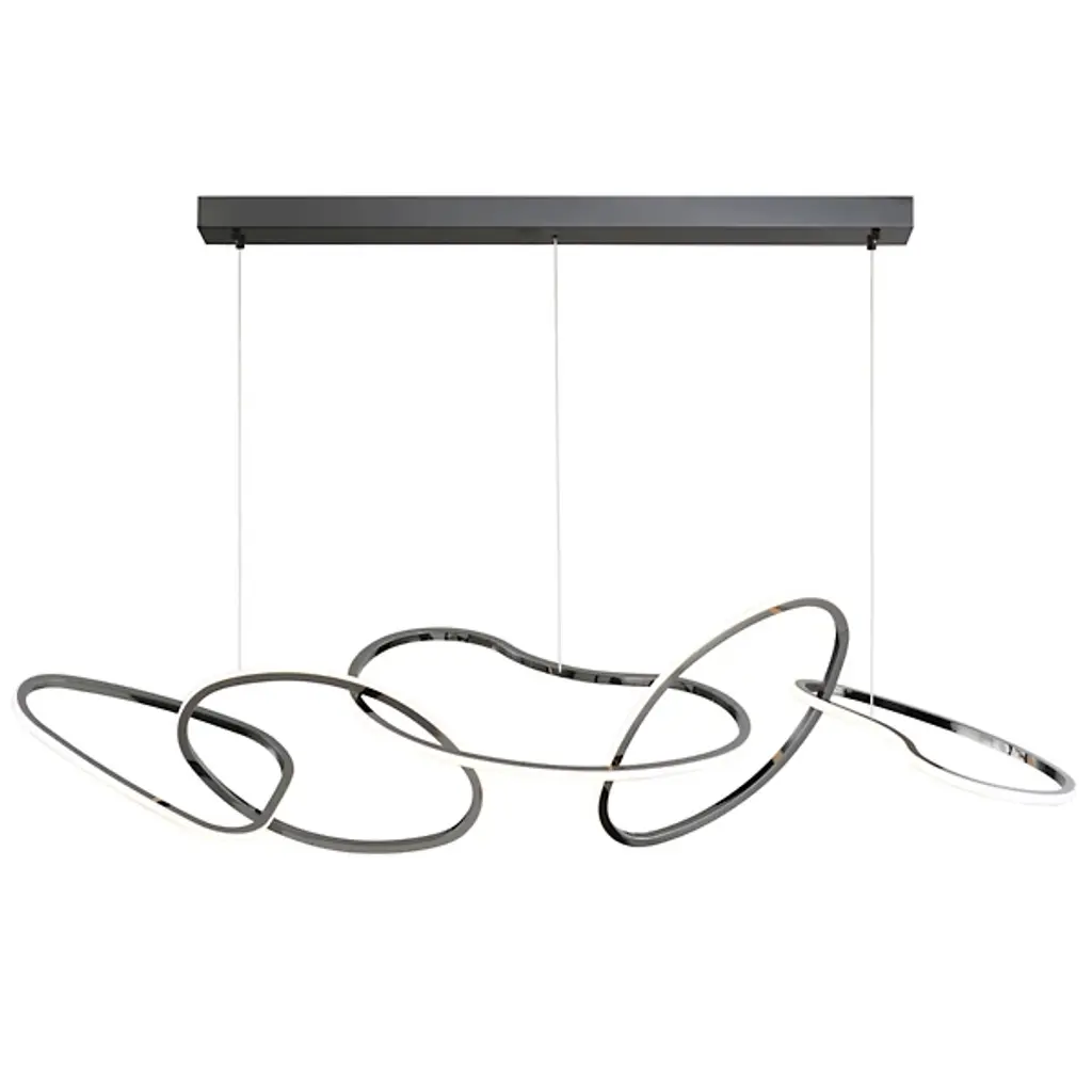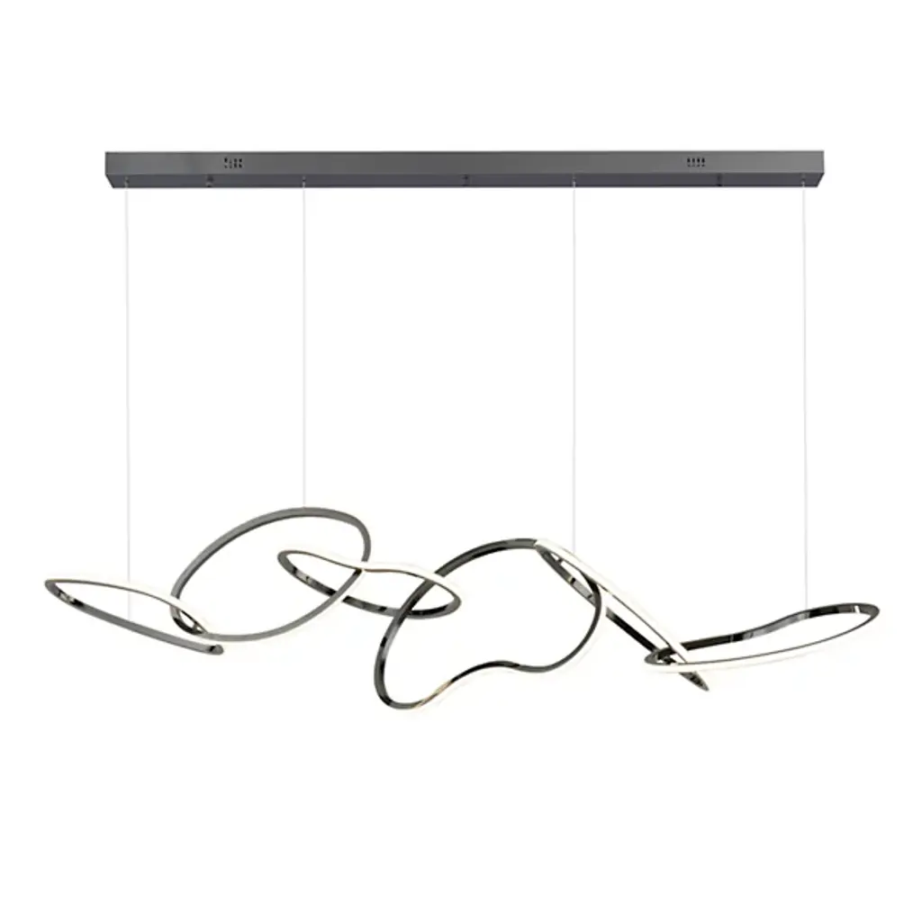 Unique and eye-catching, the Unity LED Linear Suspension from ET2 Lighting presents an abstract display of linked rings, each one flawed and misshapen for a visually-pleasing display that brings casual sophistication to the room. Three of the rings are suspended by thin wires that create a floating image. The outer surface of each ring is adorned with an integrated, energy-efficient LED that brings a full, even glow to the space that tastefully flows throughout the space.