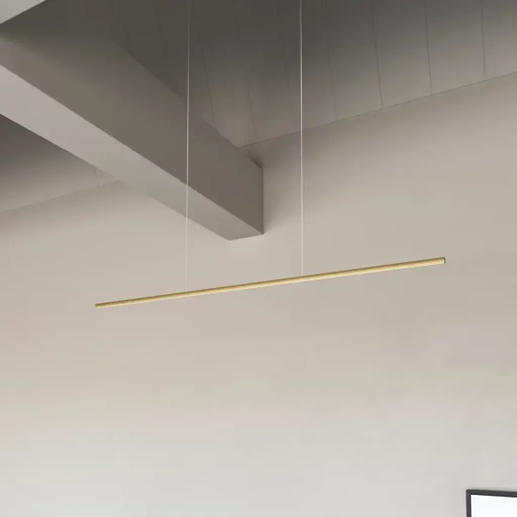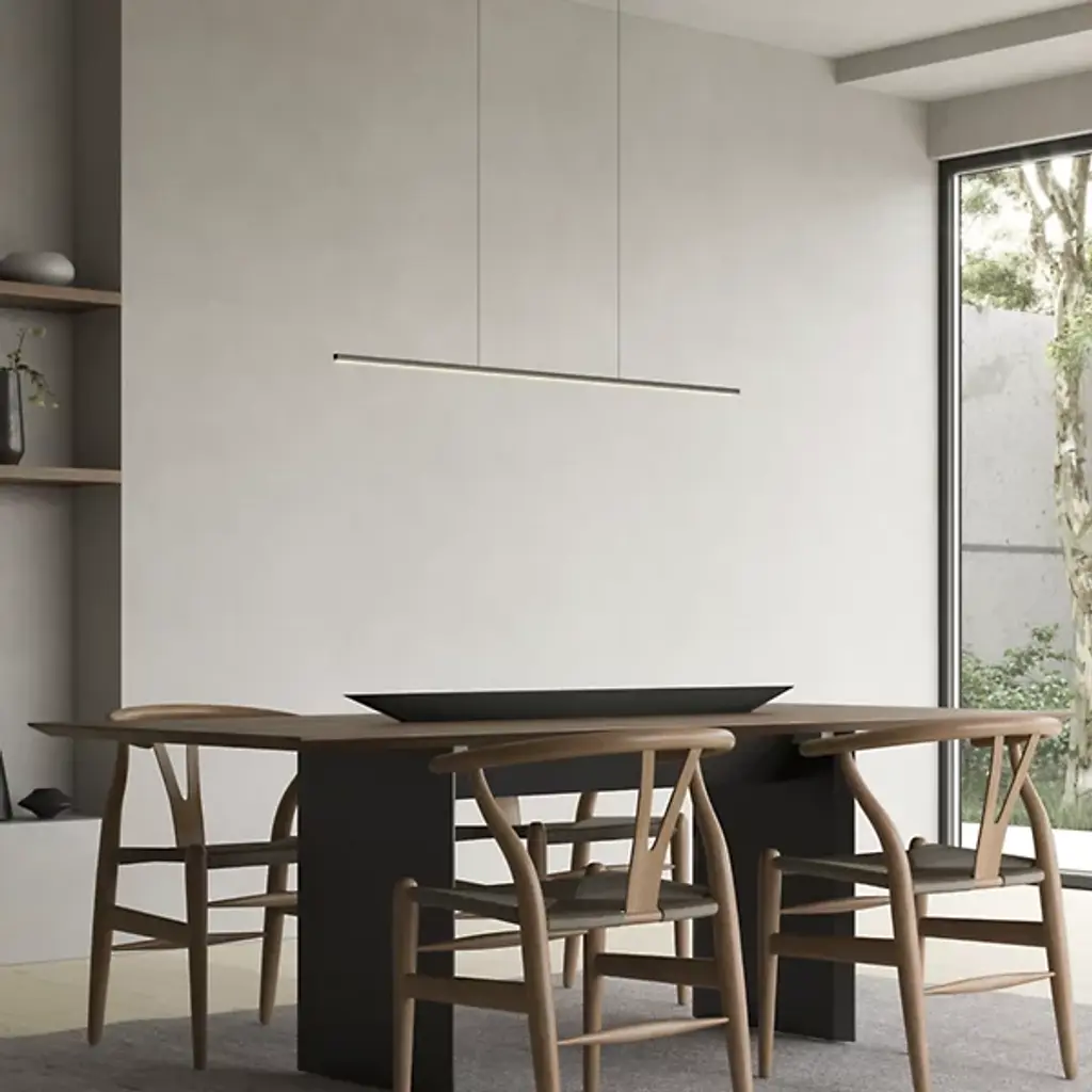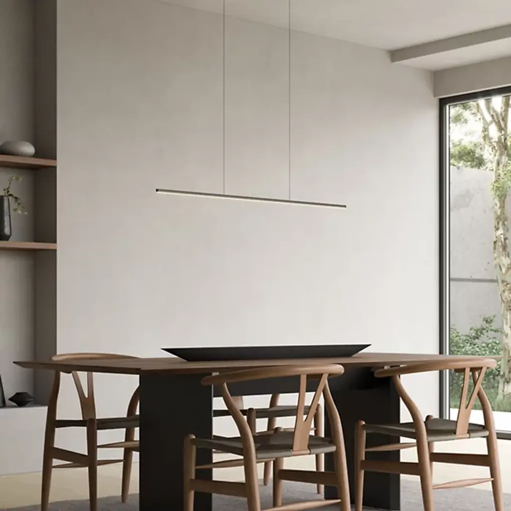 The Vega Minor LED Linear Suspension from Kuzco Lighting reduces pendant lighting to its essential elements through a thin profile suspended by nearly invisible cables. It prioritizes the LED light output over decorative elements, with a squared aluminum housing that conceals the technical components. The bottom opening holds an acrylic diffuser that softens the LED glow while maintaining the fixture's minimal visual presence. Dual suspension cables create the impression that the light bar floats in space, making it suitable for kitchen islands or dining tables where unobstructed sightlines matter.