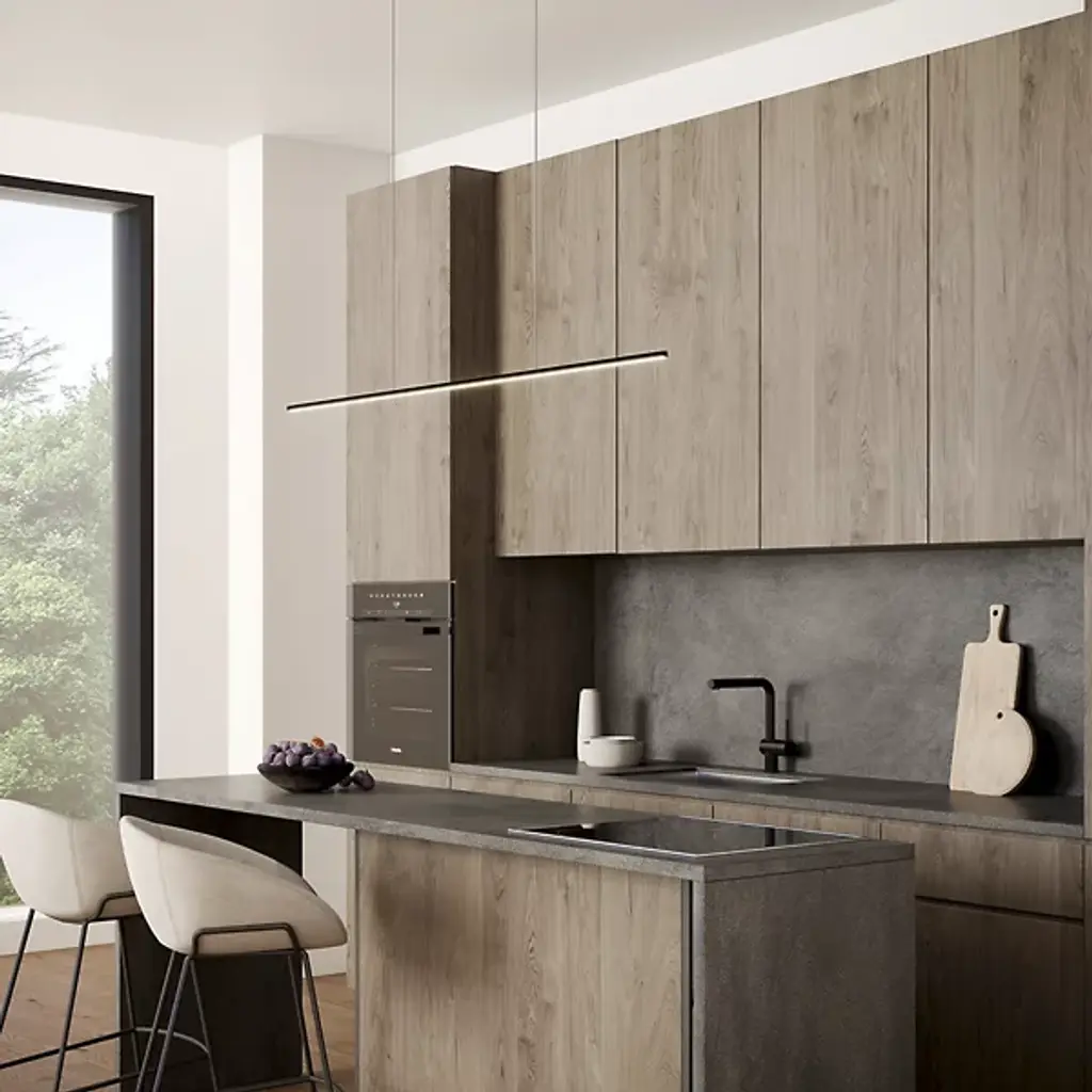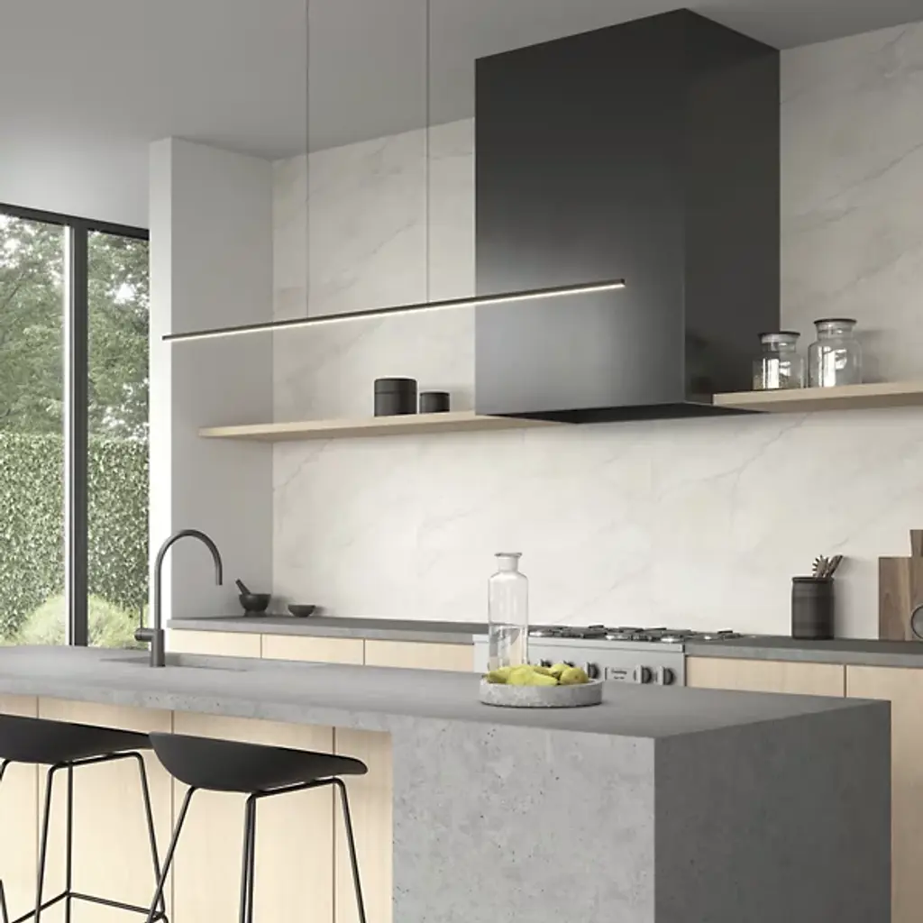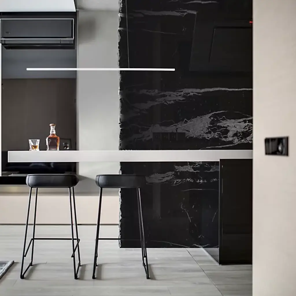 The Vega Minor LED Linear Suspension from Kuzco Lighting reduces pendant lighting to its essential elements through a thin profile suspended by nearly invisible cables. It prioritizes the LED light output over decorative elements, with a squared aluminum housing that conceals the technical components. The bottom opening holds an acrylic diffuser that softens the LED glow while maintaining the fixture's minimal visual presence. Dual suspension cables create the impression that the light bar floats in space, making it suitable for kitchen islands or dining tables where unobstructed sightlines matter.