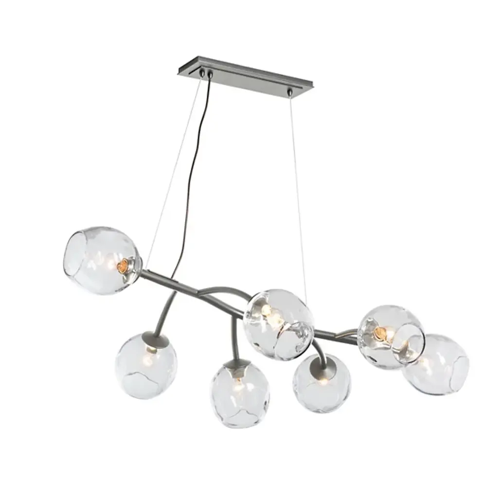 The Vine Linear Suspension by Hubbardton Forge is a stunning display designed with the master glassblowers at Simon Pearce. Inspired by the clusters of grapes that grow in a vineyard, a series of exceptionally clear, thick, handblown glass globes are supported by a handcrafted metal vine. Each glass globe has an open end, lending a dynamic touch to the layer of light that filters throughout and beyond their forms, casting a welcoming layer of illumination onto surroundings.