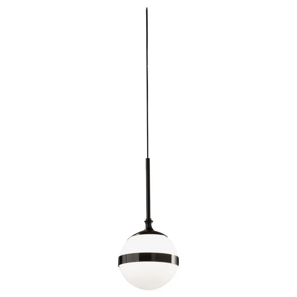 The white, blown handmade glass together with the glossy black metal, with a lead-effect treatment, interpret the polarity between black and white with the lightness of a rational and elegant design. With an impressive installation the lighting system lights up the Museum Café at Peggy Guggenheim Museum in Venice.Specifications:Light source: E12No of bulbs: 1×40W E12Dimmer: DIM 1Cable length maximum: 120 cm.