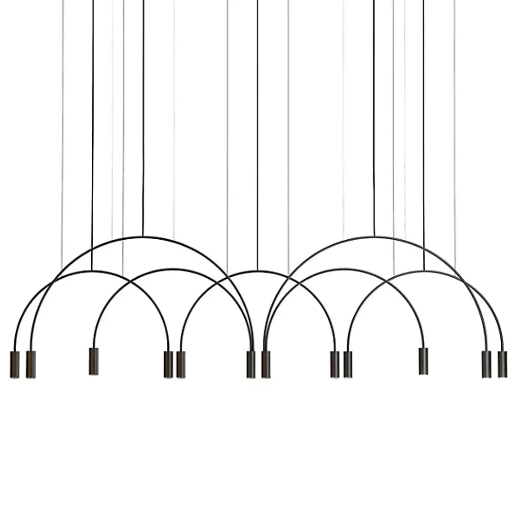 The Volta L165.3D.2T LED Linear Suspension by Estiluz is a clean design from award-winning, Barcelona-based Nahtrang Studio. The studio’s Spanish designers Daniel Vila and Ester Pujol describe this fixture as being the essence of the duo’s work philosophy: honest and direct at the same time. Its arched silhouettes are inspired by architecture seen throughout Spain, with a shared canopy sending a set of slender cords to gently curved arms ending in cylindrical aluminum heads. Its integrated LED light emits a welcoming, power-efficient ambient light through acrylic diffusers to illuminate its surroundings and bring a dynamic visual accent to décor.