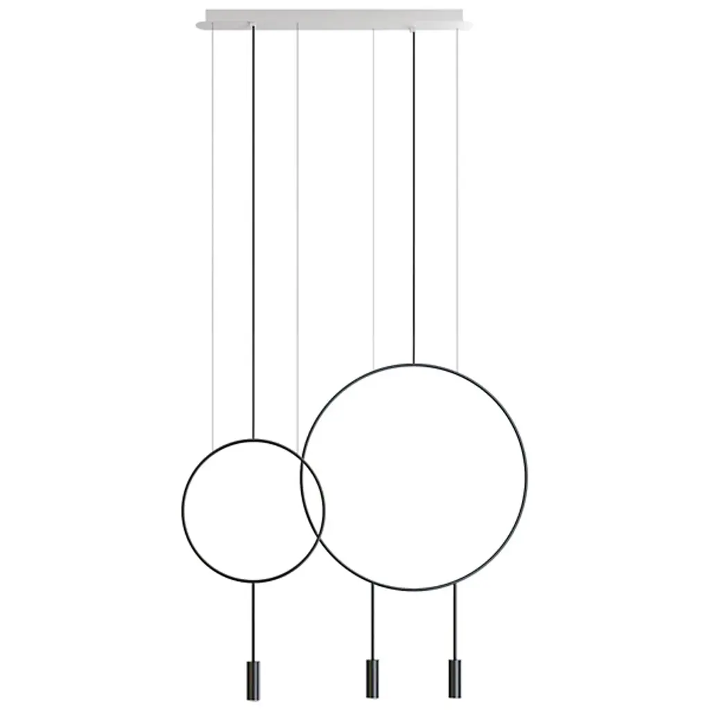 The Volta L165.3D LED Linear Suspension by Estiluz is a clean and elegant design from the Barcelona-based Nahtrang Studio. Inspired by a combination of gentle movements made by hanging sculptures and architectural elements, designers Daniel Vila and Ester Pujol paid homage to structures often seen in their home city. Slender curved arms drop from thin wires with cylindrical aluminum heads at each end containing the fixture’s LED light source, emitting a balanced, energy-efficient glow through artful and minimalistic design. Can be installed in two different arrangements.