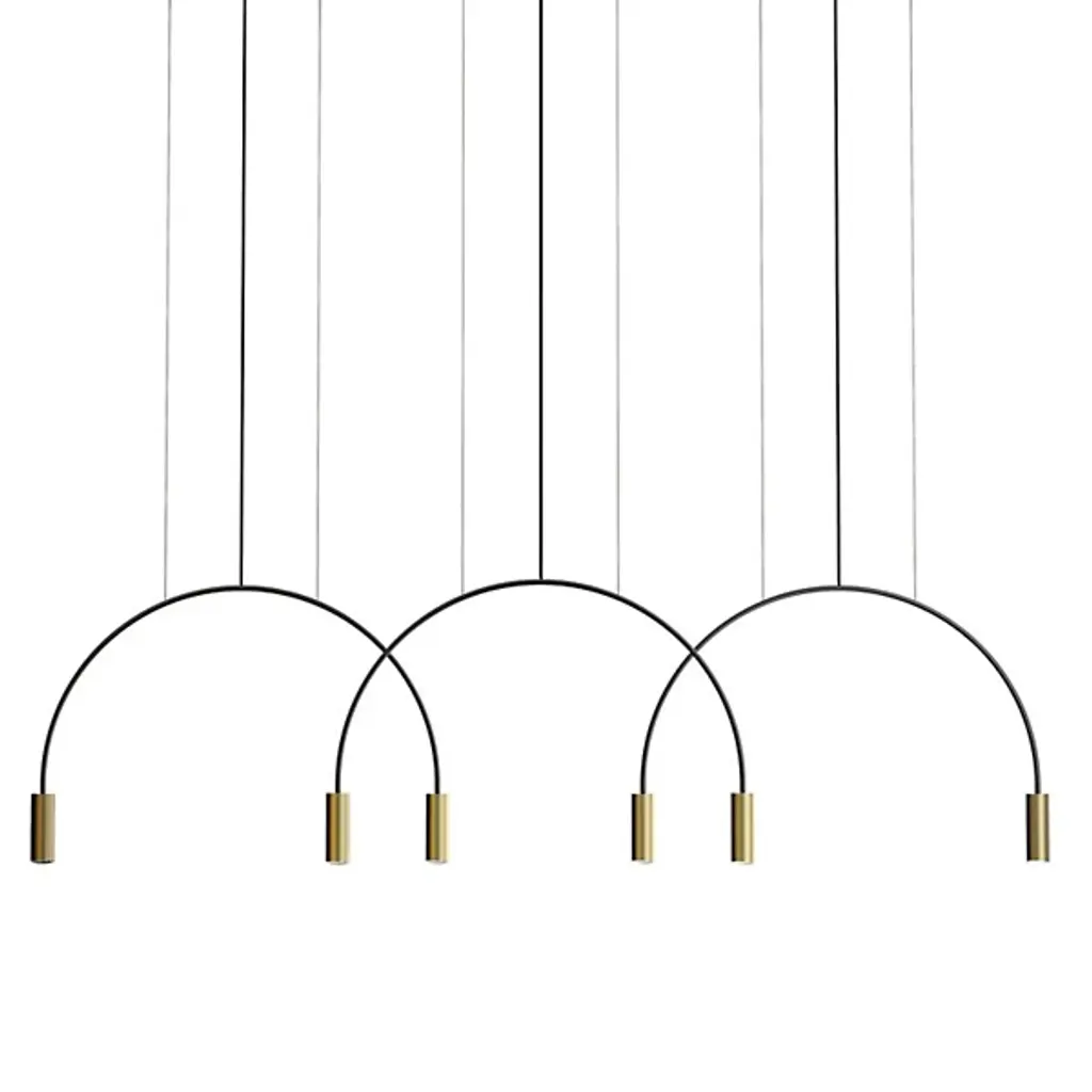 The Volta L165.3D LED Linear Suspension by Estiluz is a clean and elegant design from the Barcelona-based Nahtrang Studio. Inspired by a combination of gentle movements made by hanging sculptures and architectural elements, designers Daniel Vila and Ester Pujol paid homage to structures often seen in their home city. Slender curved arms drop from thin wires with cylindrical aluminum heads at each end containing the fixture’s LED light source, emitting a balanced, energy-efficient glow through artful and minimalistic design. Can be installed in two different arrangements.
