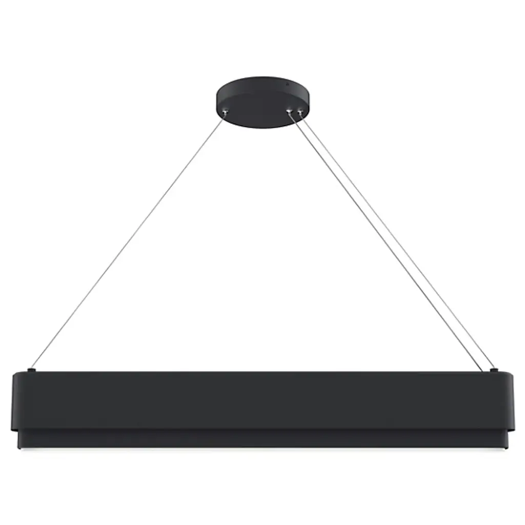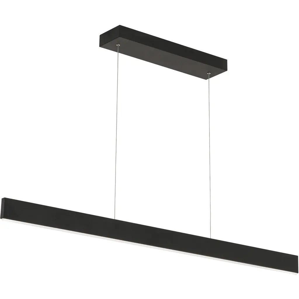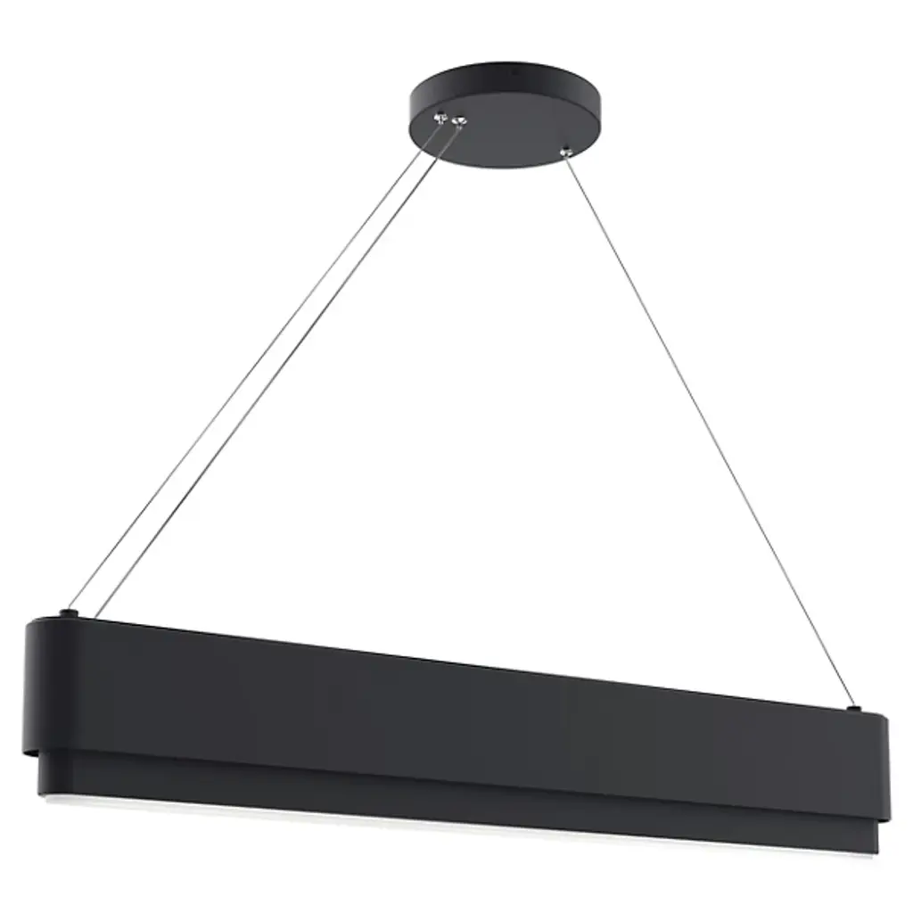 Modern simplicity and industrial elements blend effortlessly in the Walman LED Linear Suspension by Elan Lighting. This fixture’s enduring steel framework takes on the shape of a prism and is supported by adjustable cables that let you choose a desired height. Your furnishment suspends in midair through attachment to a ceiling canopy. The Walman’s integrated LED is fully dimmable when paired with an ELV dimmer.