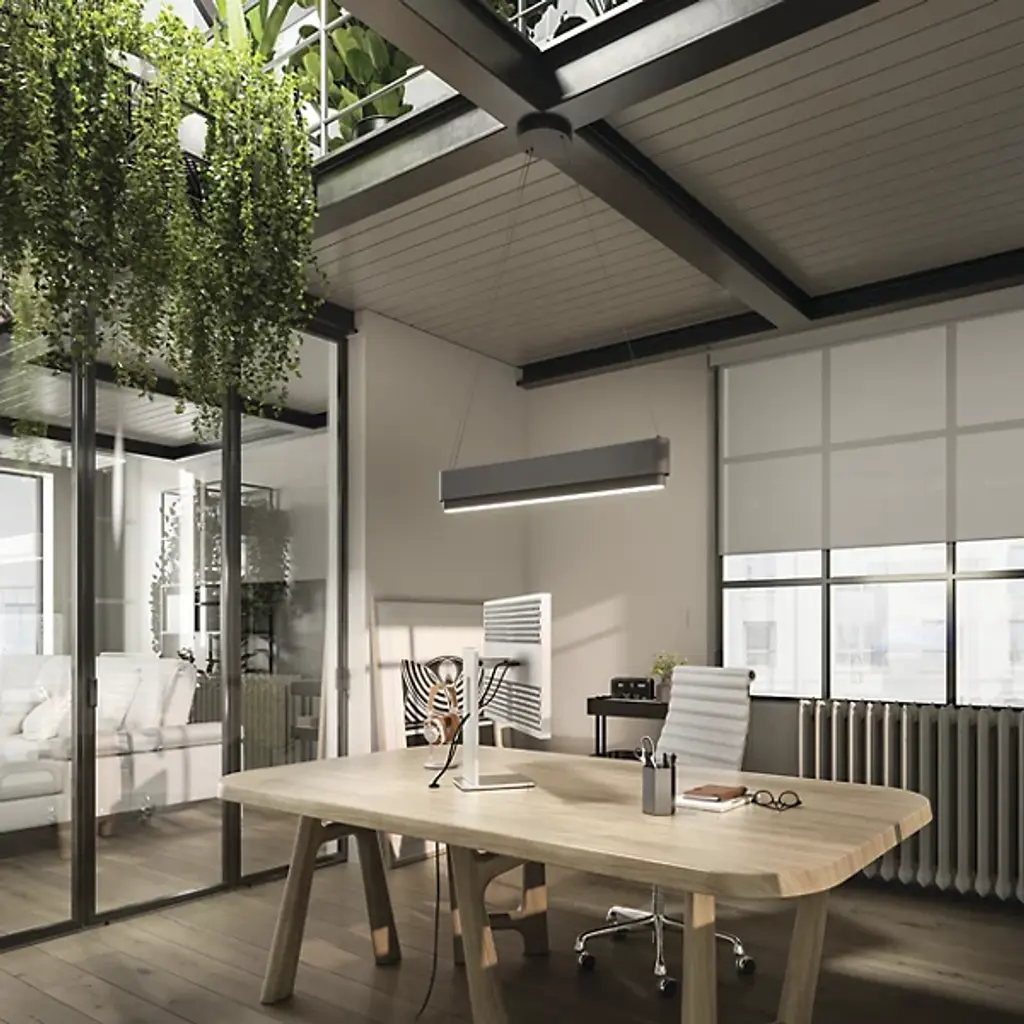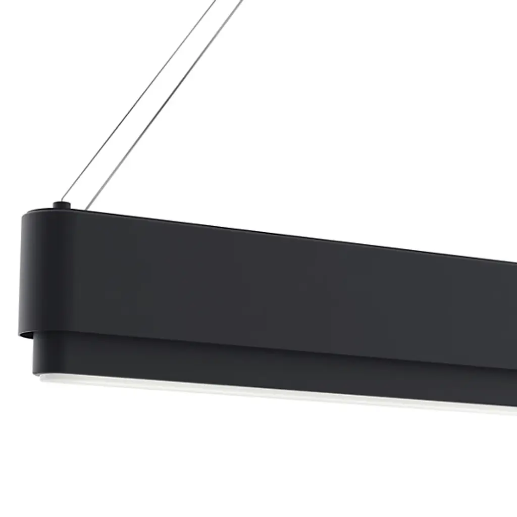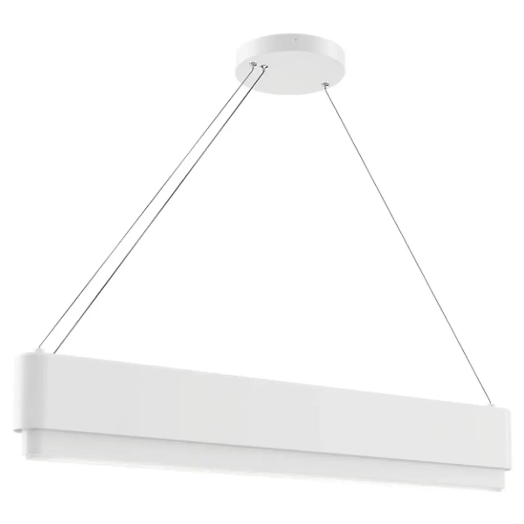 Modern simplicity and industrial elements blend effortlessly in the Walman LED Linear Suspension by Elan Lighting. This fixture’s enduring steel framework takes on the shape of a prism and is supported by adjustable cables that let you choose a desired height. Your furnishment suspends in midair through attachment to a ceiling canopy. The Walman’s integrated LED is fully dimmable when paired with an ELV dimmer.