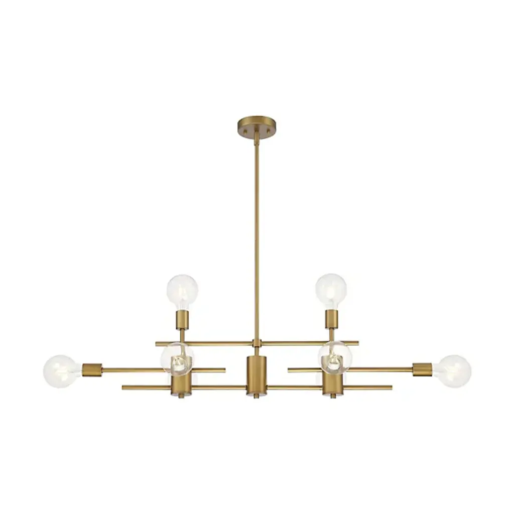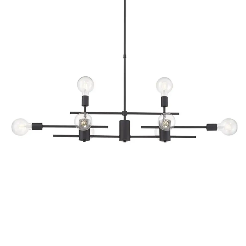 Bring a bold array of illumination to your interiors with the intricate and appealing design of the Walter Linear Suspension from Alder & Ore. A stylish blend of industrial simplicity and transitional intricacy, it uses a clean-surfaced metal disc canopy and slender central downrod to anchor a wider fixture below. The fixture itself extends two horizontal crossbars below, which use a series of vertical cylindrical hubs to extend an array of sockets to hold open lamping, and additional slender arms to each side, creating a sculptural spectacle that blazes with bright light.