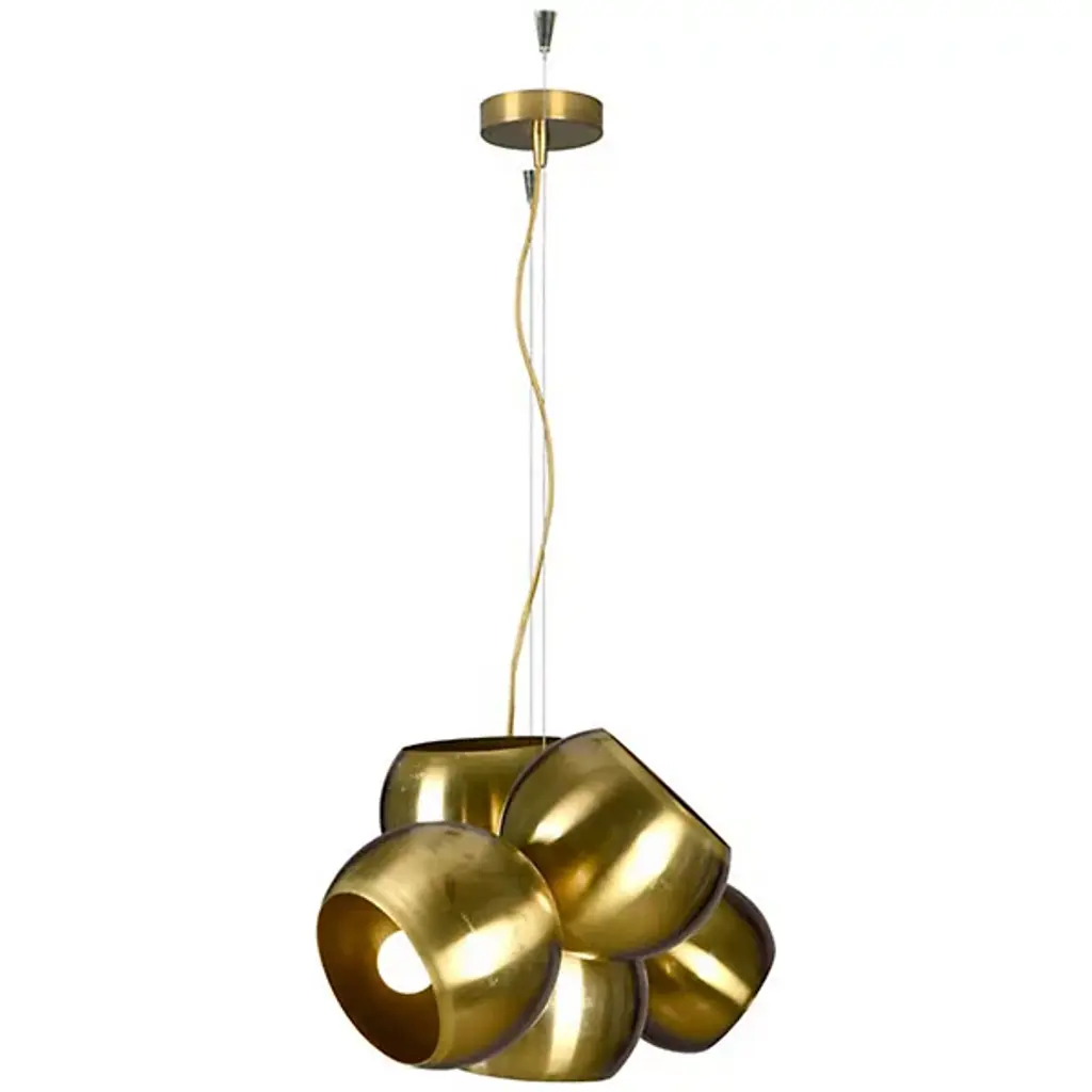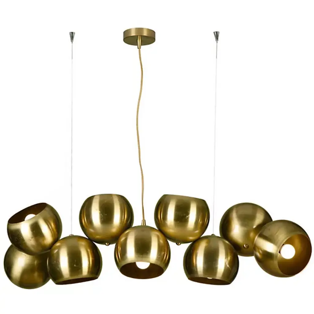 Bursting, lively, and sweeping like a growing vine. The Werkbund Linear Suspension from MYO excites the imagination with organic forms filled with atmospheric light. Creator Juan Orts sees the magic in light. His work seeks to conjure emotions. This piece’s fine wire suspension enhances its floating illusion. Connected alongside each other, metal globes face in all directions to give the light a room-filling quality. This light relaxes as its warmth fills the interior of the berry-like globes. The reflective globes produce a sculptural silhouette that can be appreciated both off and on.
