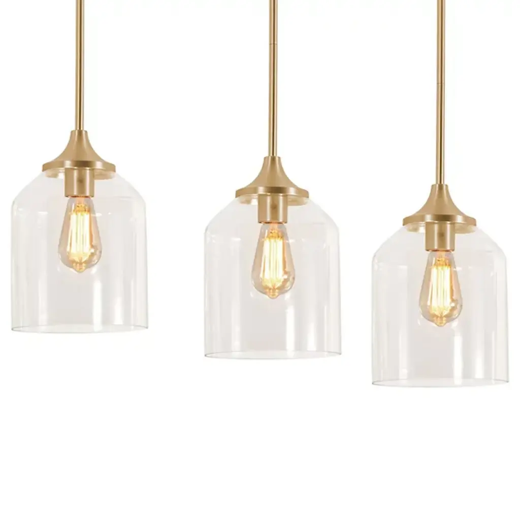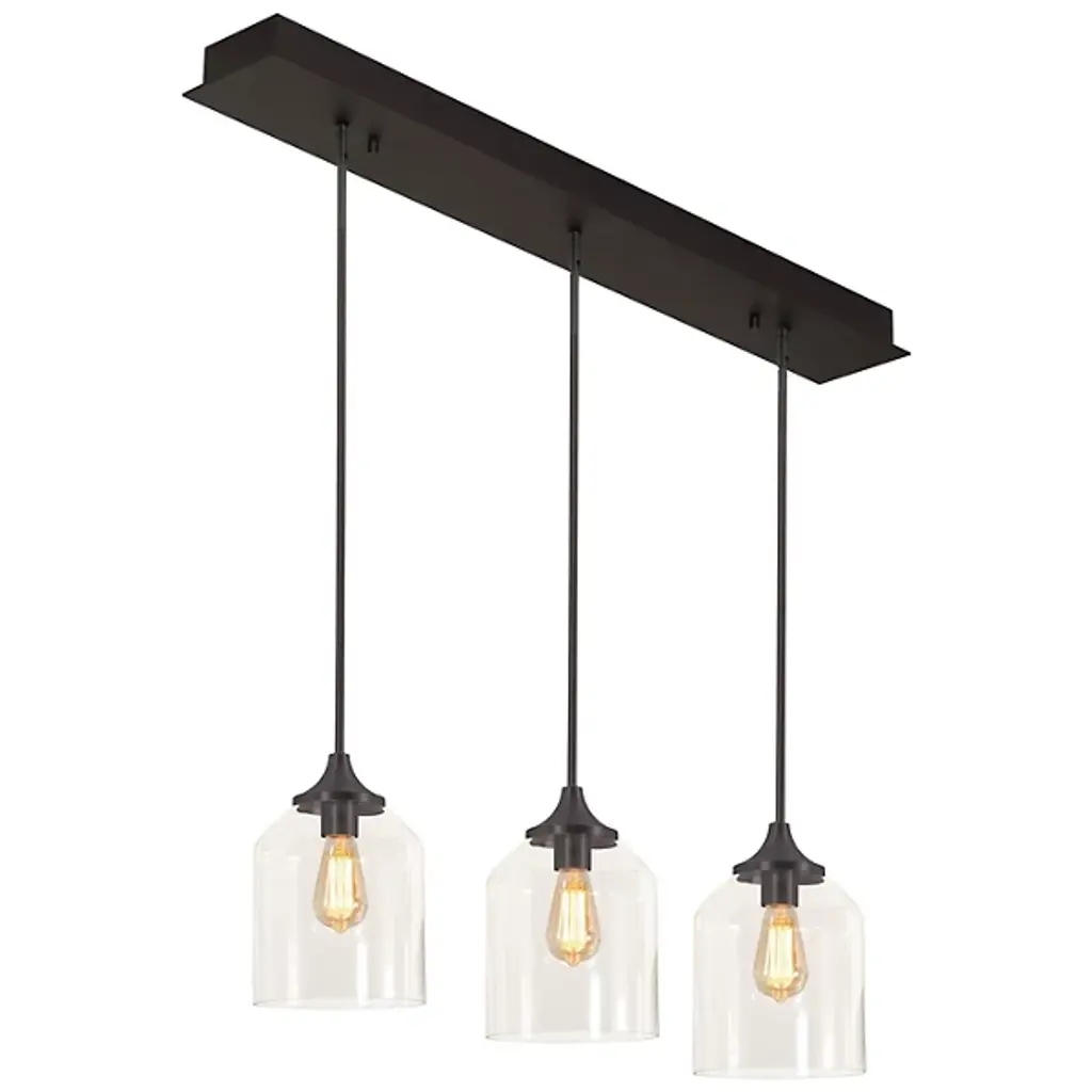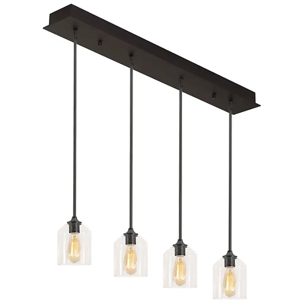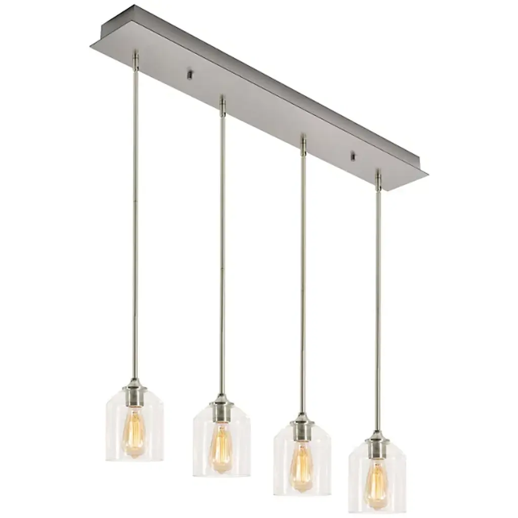 Refresh your home’s interior design with the William Multi-Light Linear Suspension by AFX Lighting. This ultra-modern pendant features a long block base with multiple supporting rods hanging in symmetry. Clear glass bowl-shaped shades sit at the end of each rod, each shade holding a lighting element. Mount this pendant on the ceiling to fill the space above your kitchen island or dining table. A dimmer switch is included and is perfect for creating ambiance.