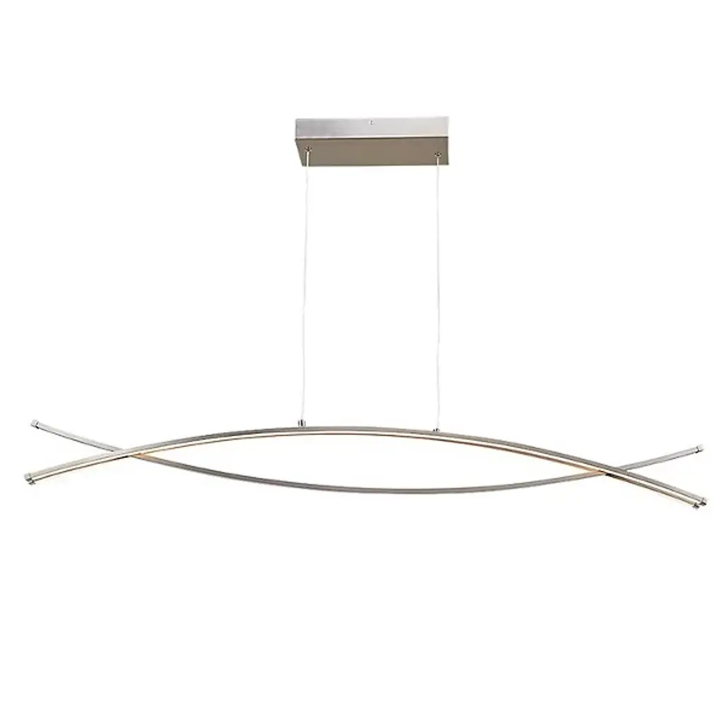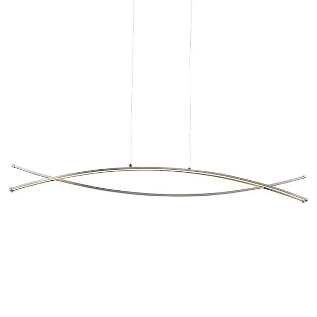 Add an elegant focal point to a modern home with the Wishbone LED Linear Suspension by Abra Lighting. A rectangular canopy supports two aircraft cables that suspend a pair of bowed steel arms. Intersecting to create an elongated shape, the arms house an integrated LED paneling to emit a soft light. Its seamless design allows for a minimal, but striking, accent whether mounted in a kitchen, living room, or dining area.