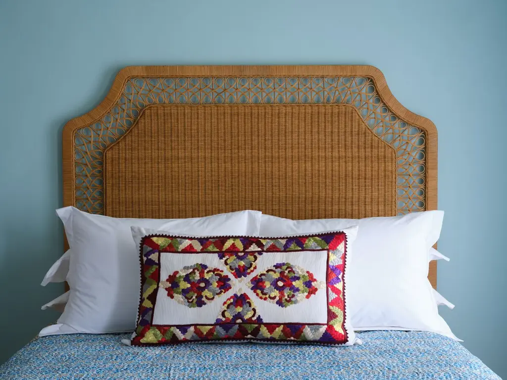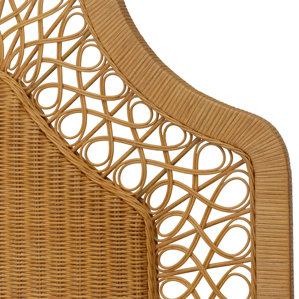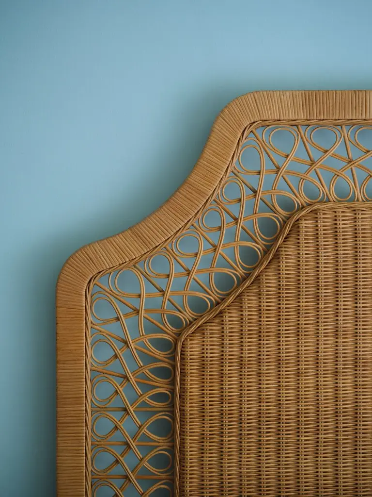 At one point in time practically anything you can imagine was being woven in rattan, from railroad seats to the airplane seat which carried Charles Lindbergh across the Atlantic. Today, our rattan can carry you off to sleep--our Adair woven headboard brings a wonderful warmth to any bedroom. Its well-proportioned frame is in the shape of a draped arch, with a large, open weave loop-pattern border surrounding a densely woven field.