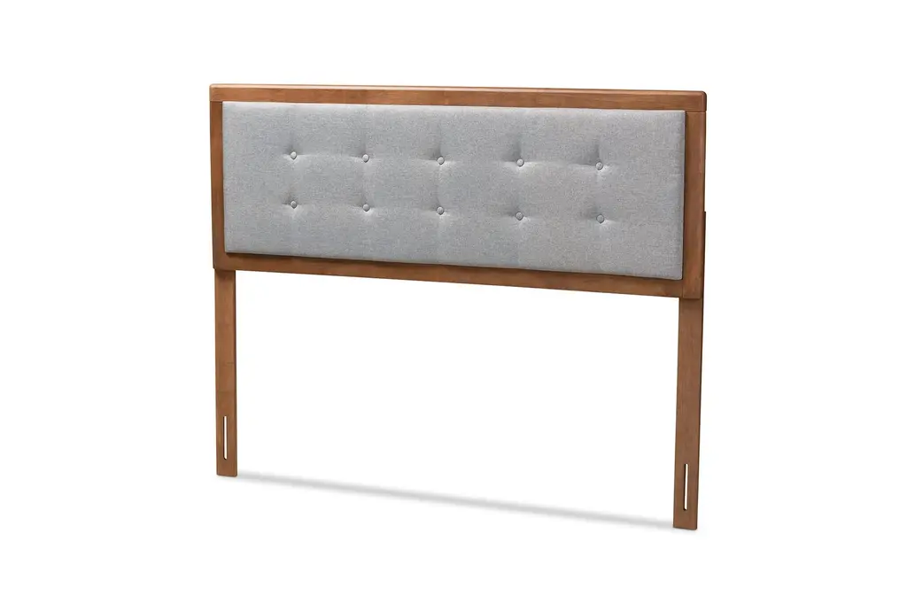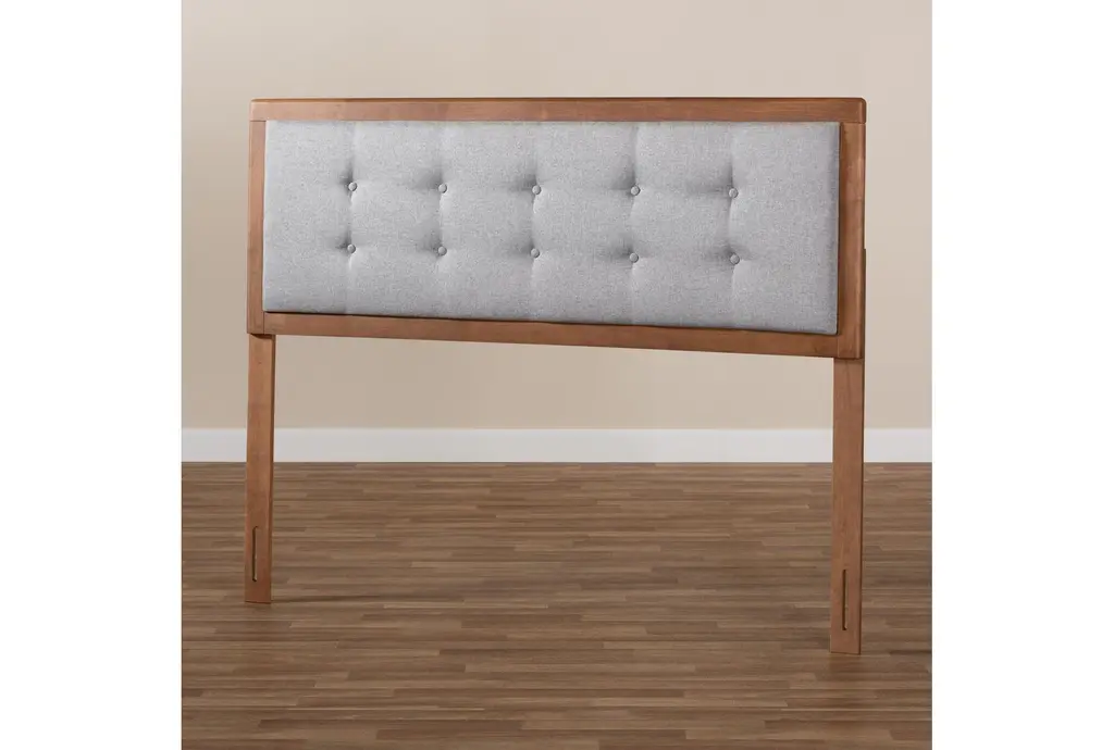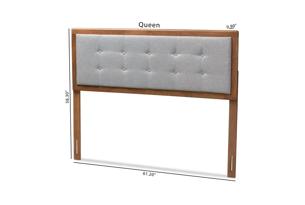 Adryan Queen Light Grey Upholstered Natural Fabric Walnut Brown Finish Wood Headboard